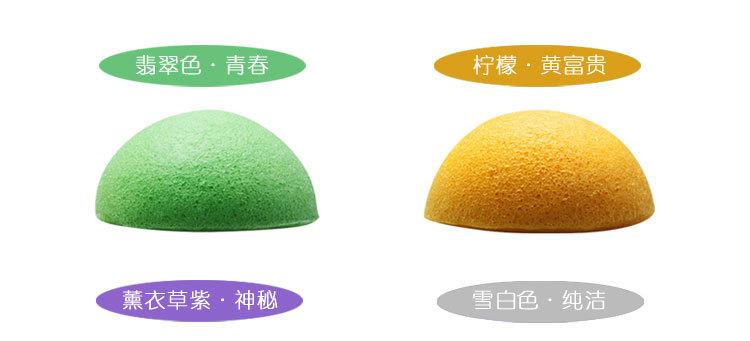 color | Esponja konjac hemisférica rojo cereza, esponja konjac hemisférica verde, esponja konjac hemisférica blanquecina, esponja konjac hemisférica amarillo jengibre, el color se puede personalizar según los requisitos del cliente | ||