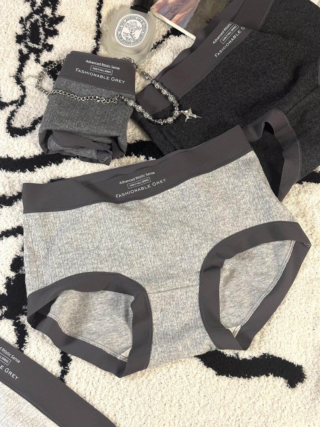 Nuevas Braguitas de Algodón Puro 10A Primavera/Verano para Mujer, Entrepierna Antibacteriana de Algodón, Algodón Acanalado Gris Sin Costuras, Calzoncitos Simples para Dama