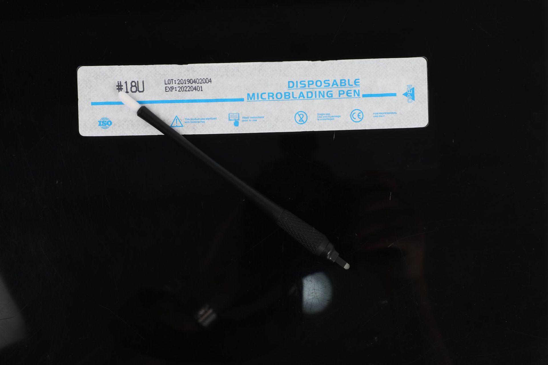 Pluma para tatuaje de cejas transfronteriza aguja fina de 0.18 mm desechable hecha a mano para bordado pluma 18U aguja herramienta de bordado de tatuaje de cejas niebla negra