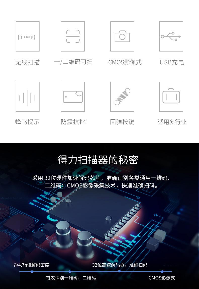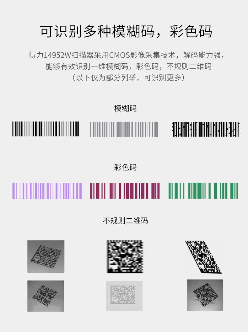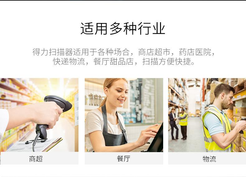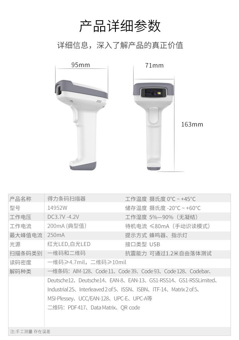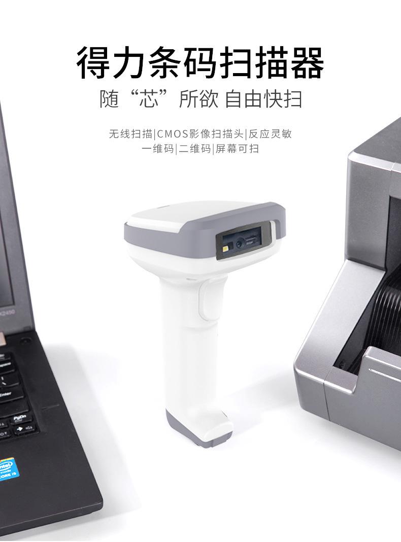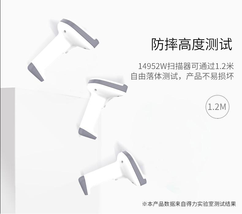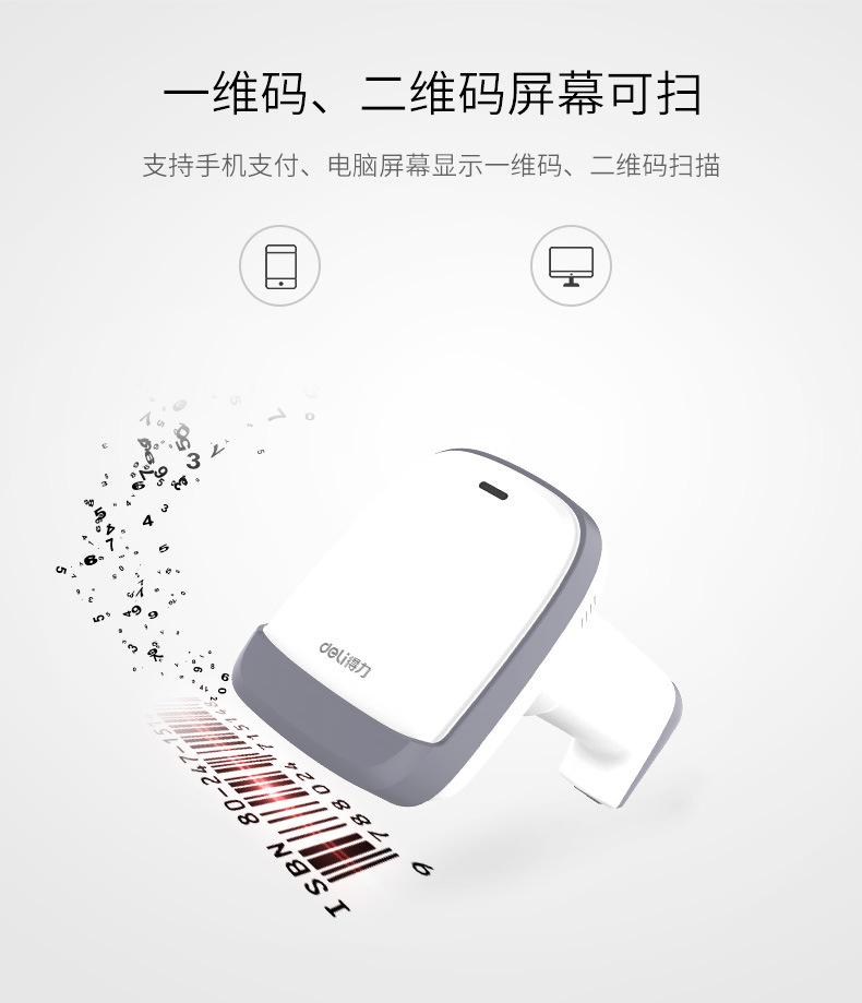 Deli 14952W pistola de escaneo inalámbrica cajero de supermercado 1 pistola de escaneo de código QR inventario de almacén