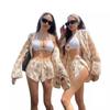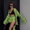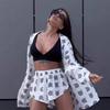 2024 Europeo y Americano Transfronterizo Nuevo Suelto Manga Larga para Mujer Estampado Ropa Casual de Trabajo Pijama con Cordones Traje de Shorts de Cintura Alta
