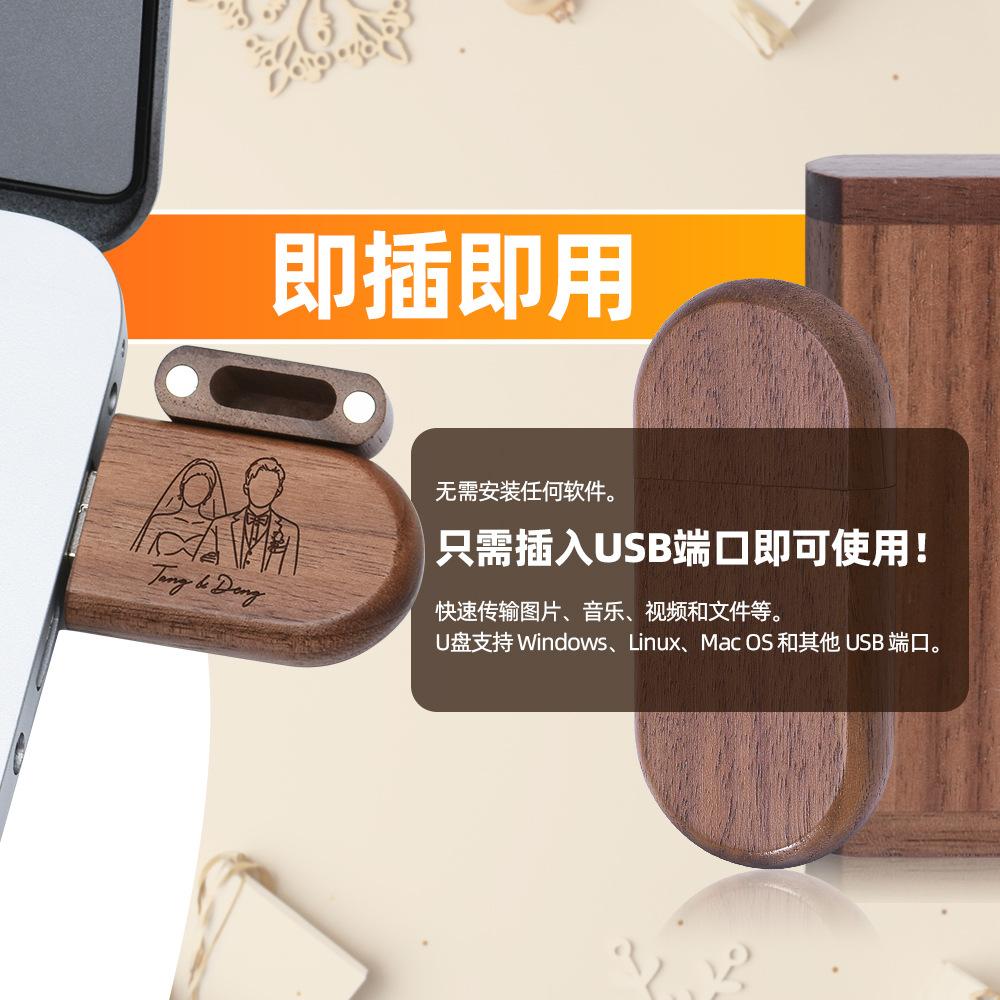 Unidad Flash USB Ovalada de Madera 64g Logo Grabado Unidad Flash USB de Gran Capacidad Regalo de Graduación Unidad Flash USB de Alta Velocidad 128g Fábrica Original en Venta