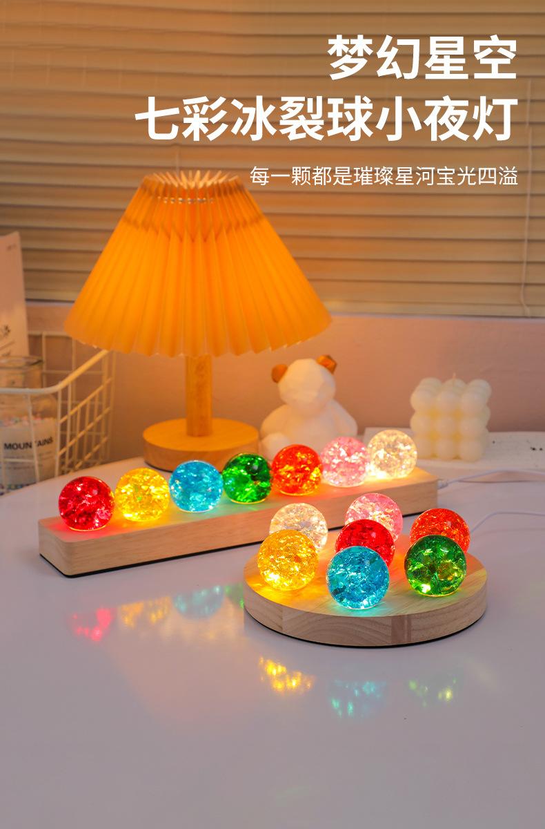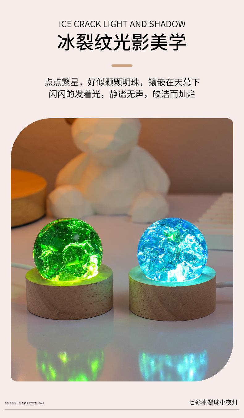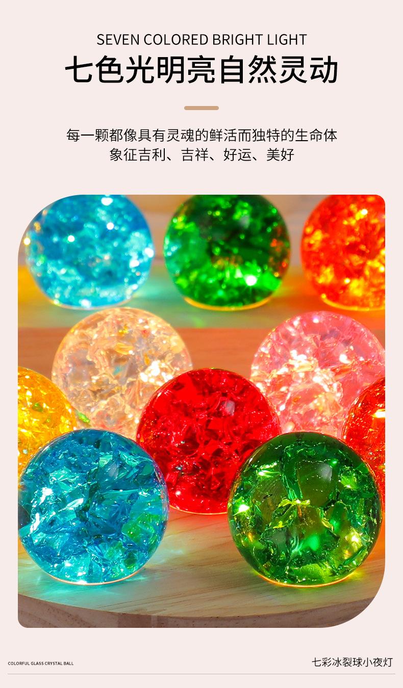 Bola de Cristal Luminosa de Grietas de Hielo Colorida Adorno de Escritorio Luz Nocturna Cielo Estrellado Bola de Cristal Glaseado Luz de Ambiente Regalo de Cumpleaños