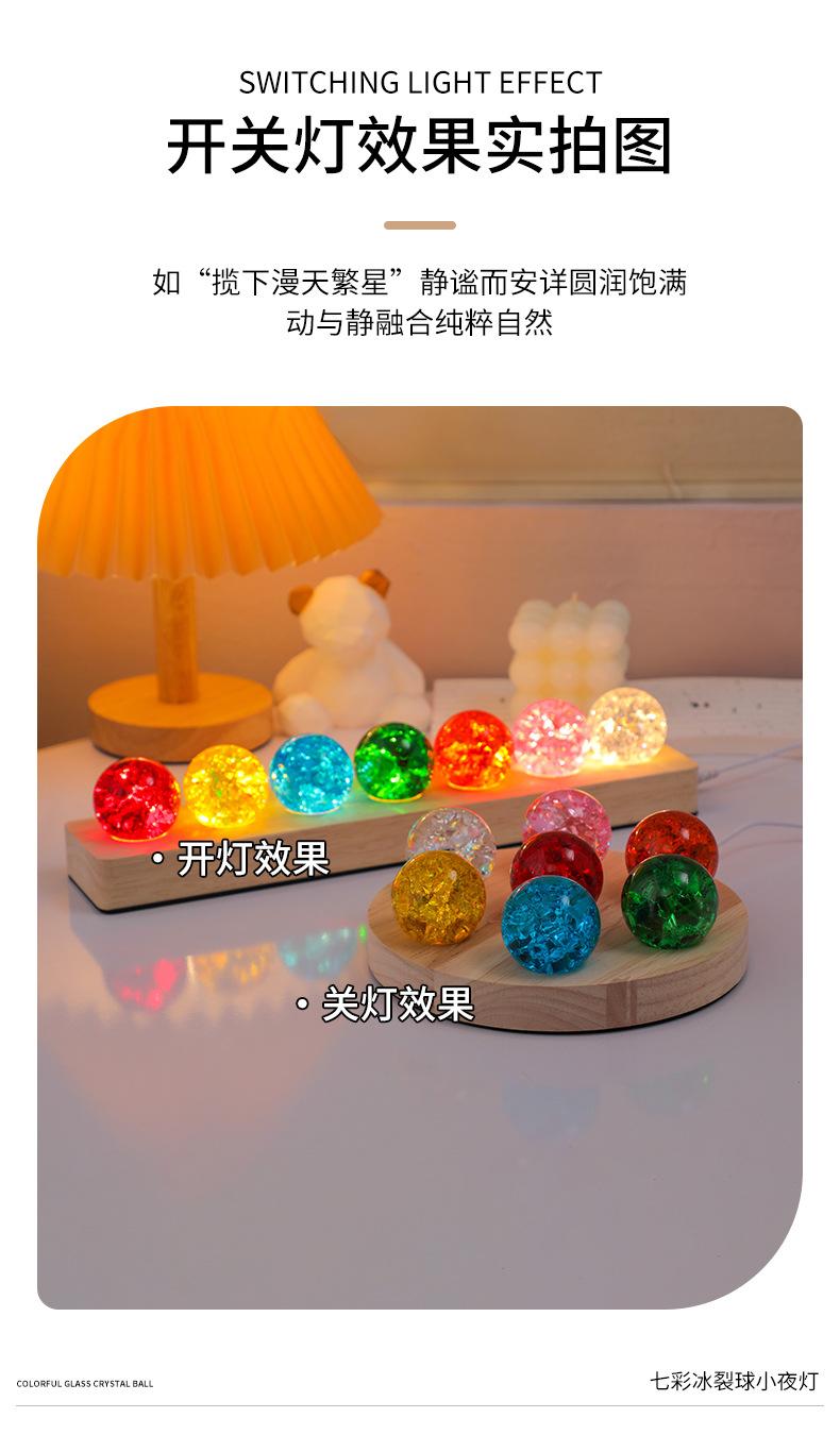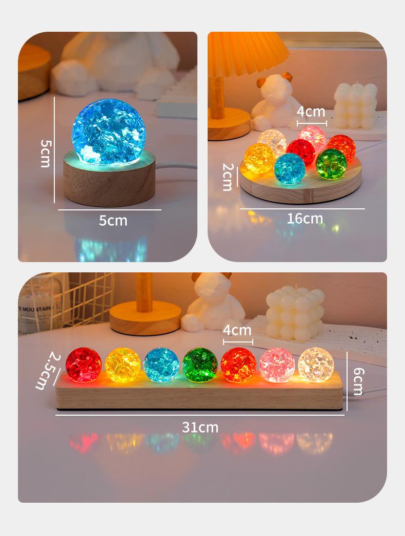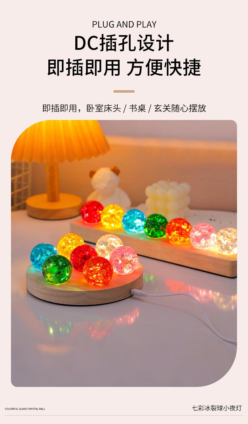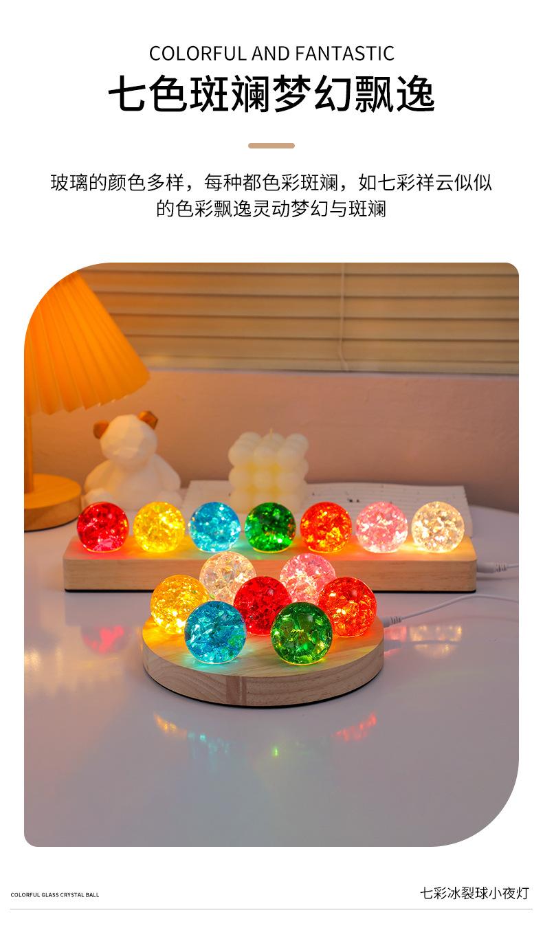 Bola de Cristal Luminosa de Grietas de Hielo Colorida Adorno de Escritorio Luz Nocturna Cielo Estrellado Bola de Cristal Glaseado Luz de Ambiente Regalo de Cumpleaños