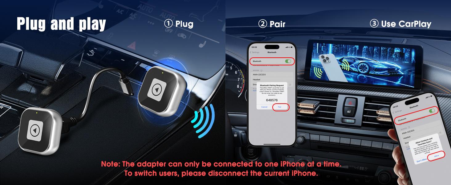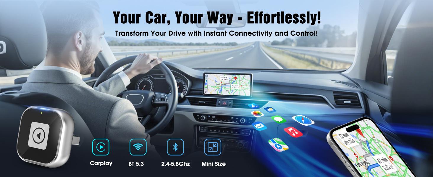 Interconexión Coche-Máquina Caja Carplay Cableada a Inalámbrica Car Carplay Adaptador Inalámbrico con Adaptador