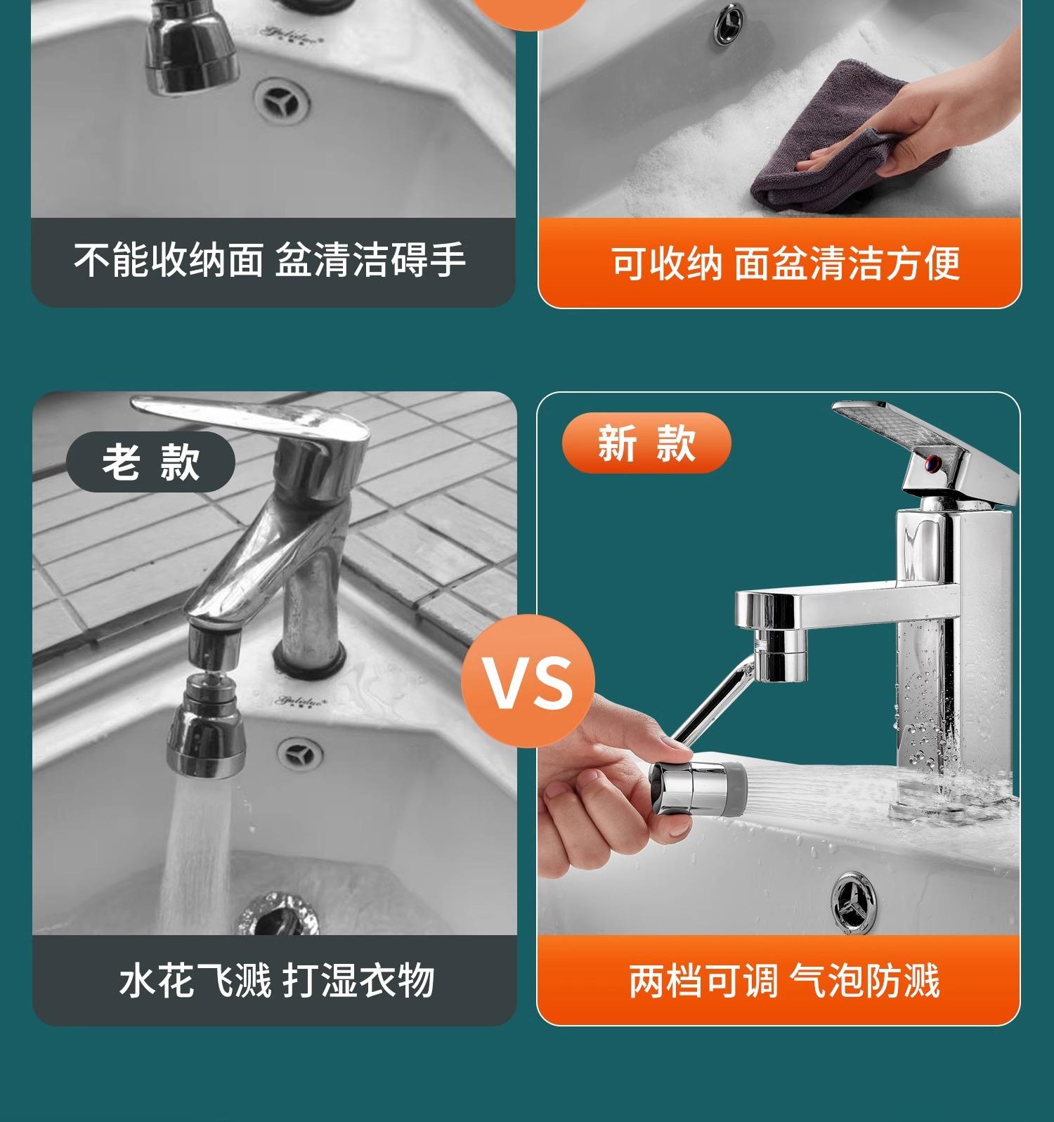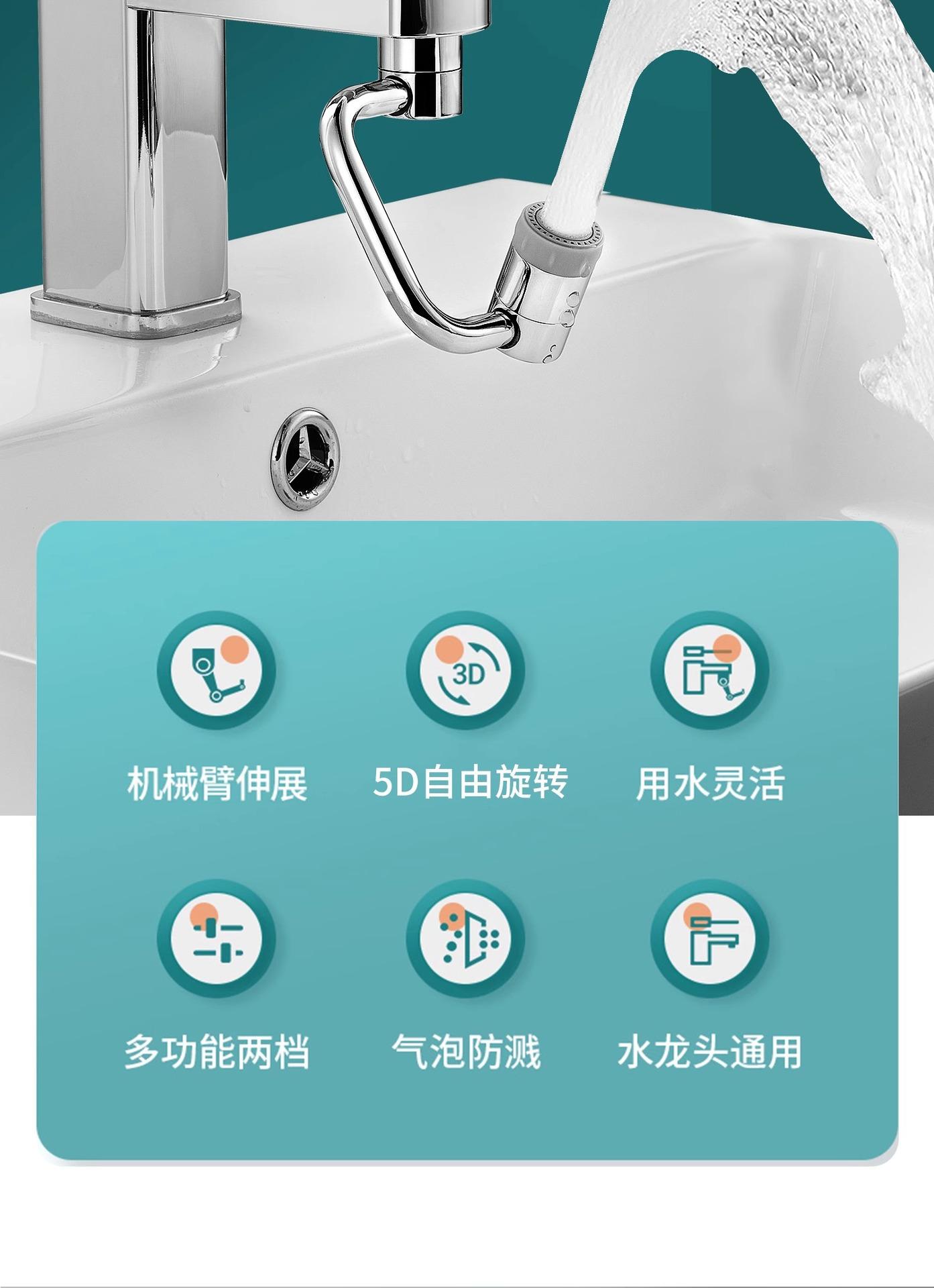 Brazo mecánico grifo universal giratorio lavabo grifo de extensión de dos velocidades junta universal burbuja artefacto antisalpicaduras