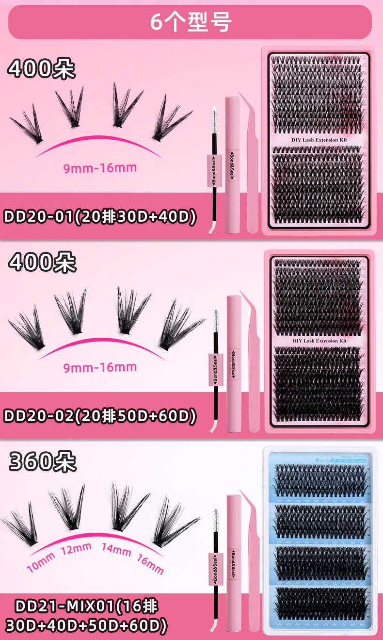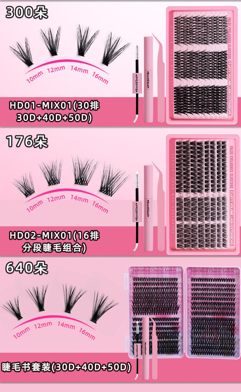 Set de Pestañas Postizas Segmentadas Comercio Exterior 50D 60D Densas Extensiones de Pestañas Autoinjerto Kit de Racimos de Pestañas