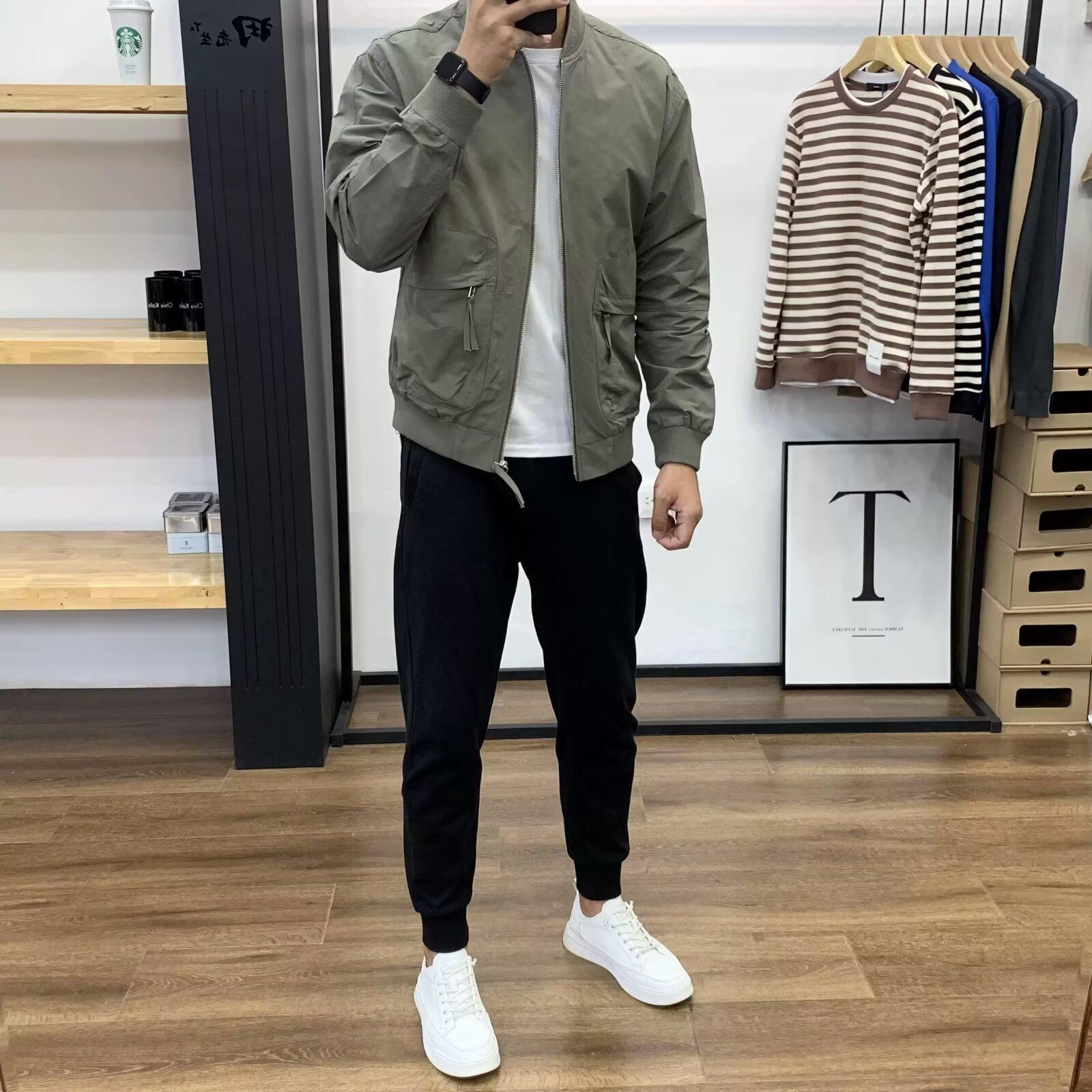Chaqueta de Primavera y Otoño para Hombre Ajuste Slim Chaqueta de Aviador Ropa de Trabajo Cuello Alto Casual para Exterior Adolescente Versátil Chaqueta de Béisbol para Hombre