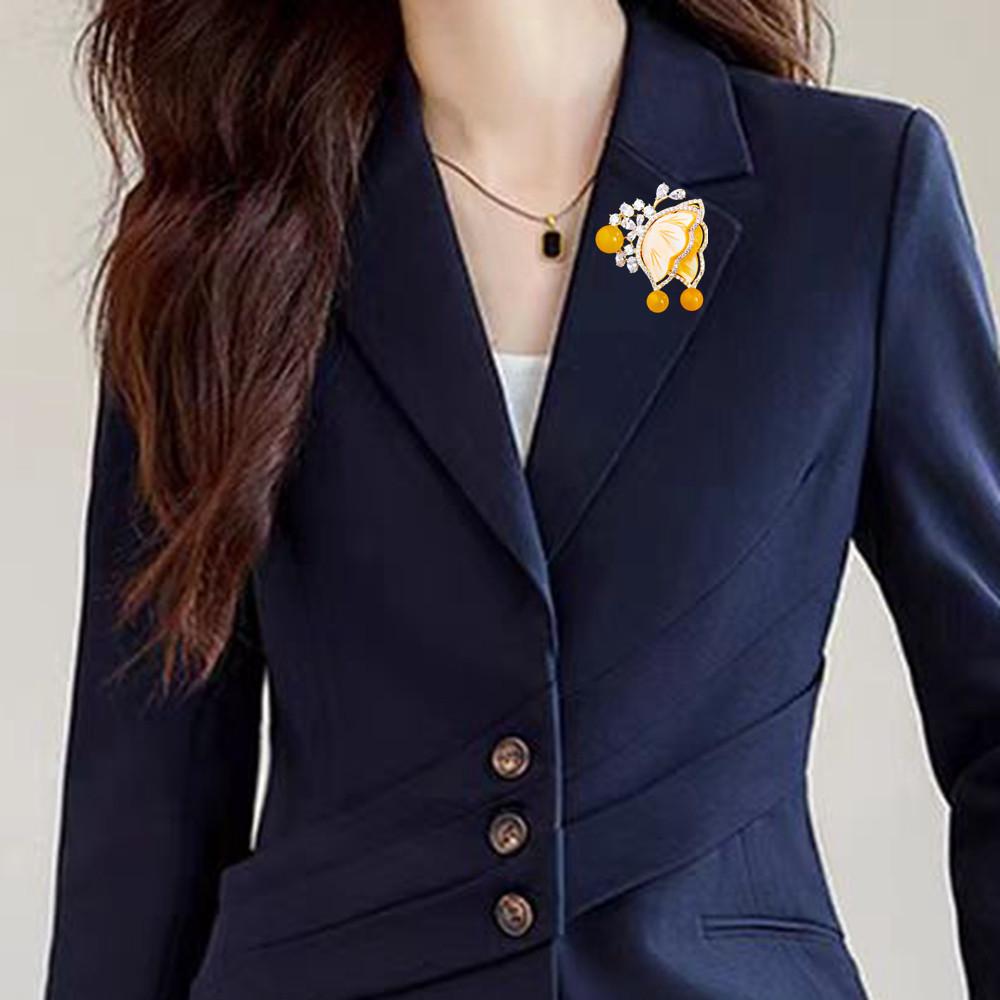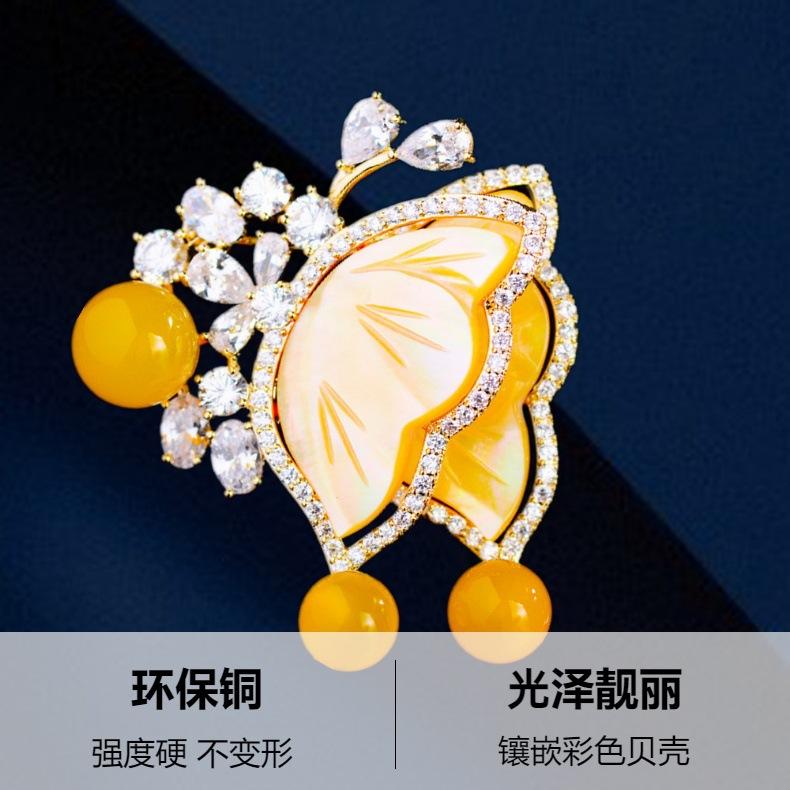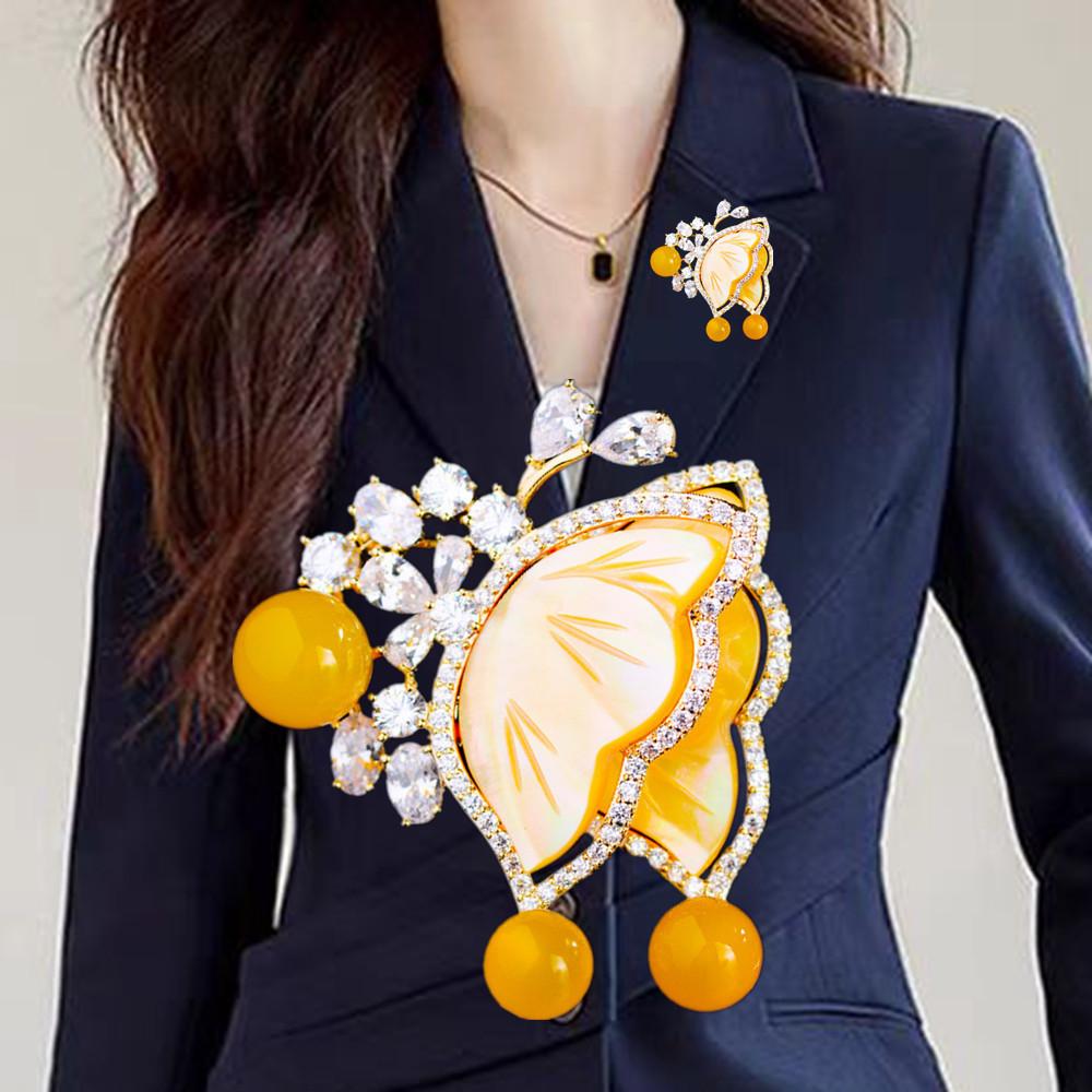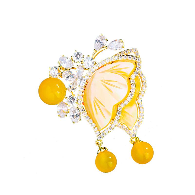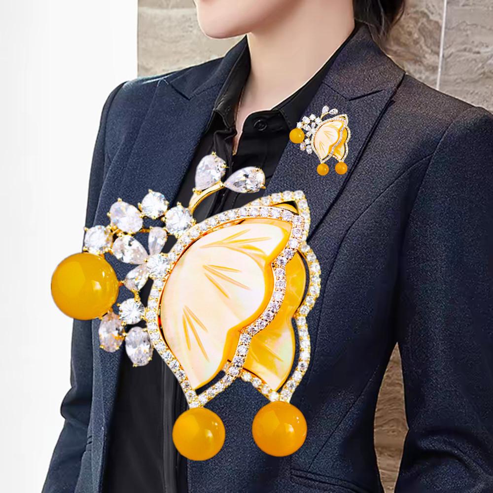Broche de Concha Estilo Chino Lujo Ligero de Alta Gama con Circonita Incrustada Ramillete Mariposa Versátil Moda Accesorios de Ropa para Mujer Regalo
