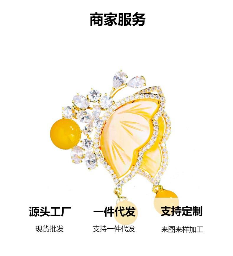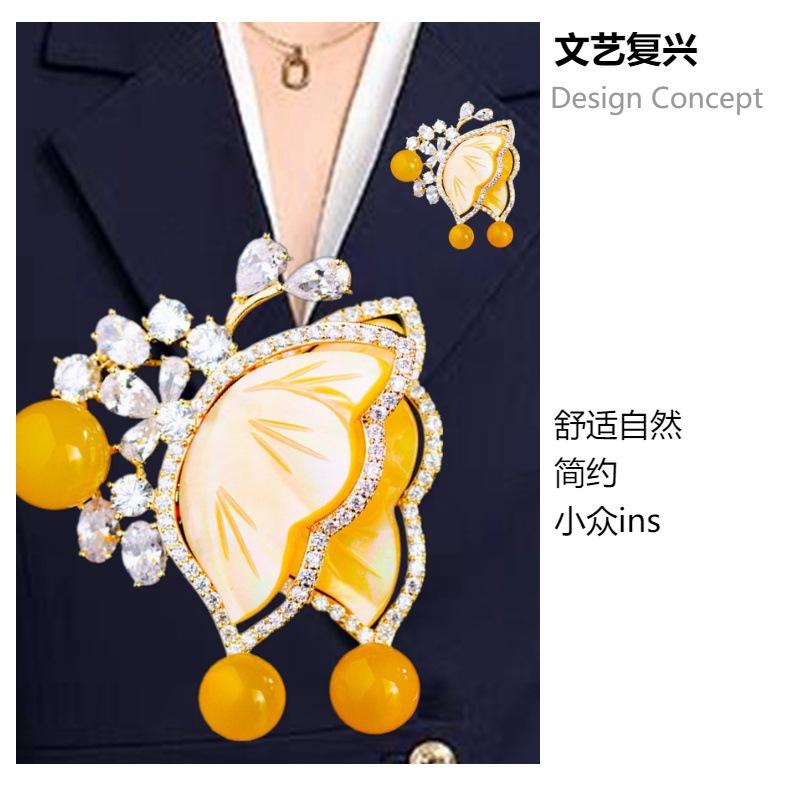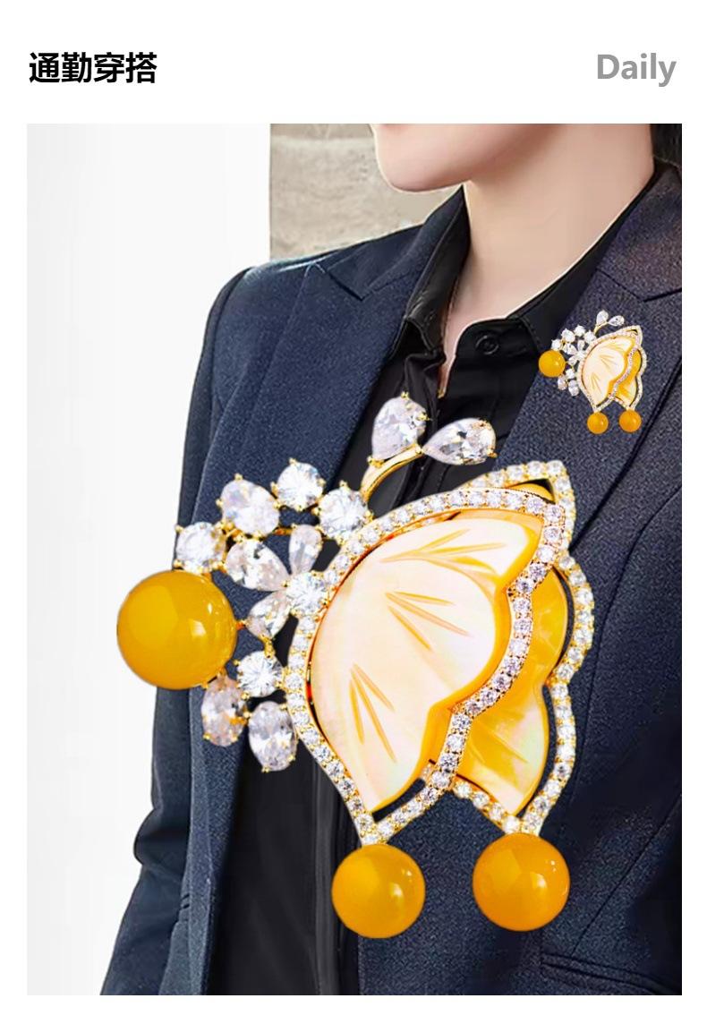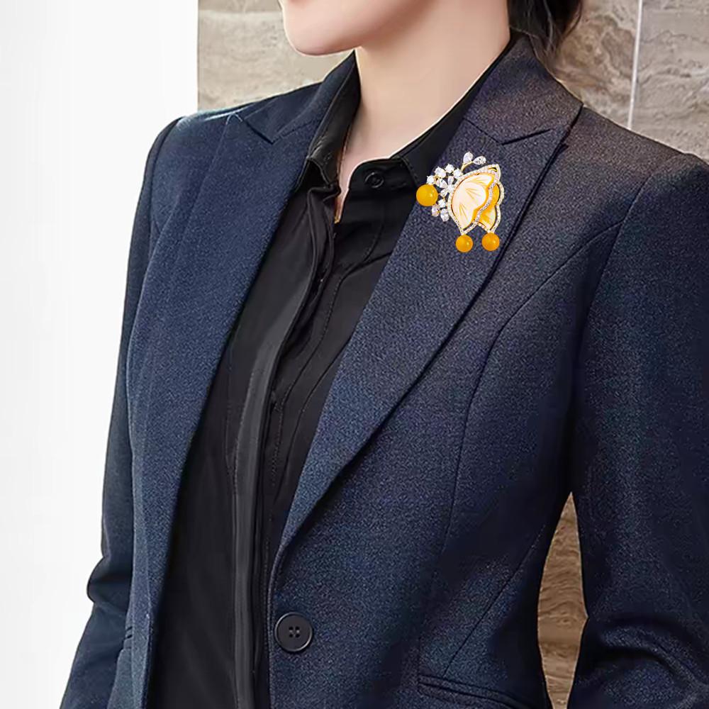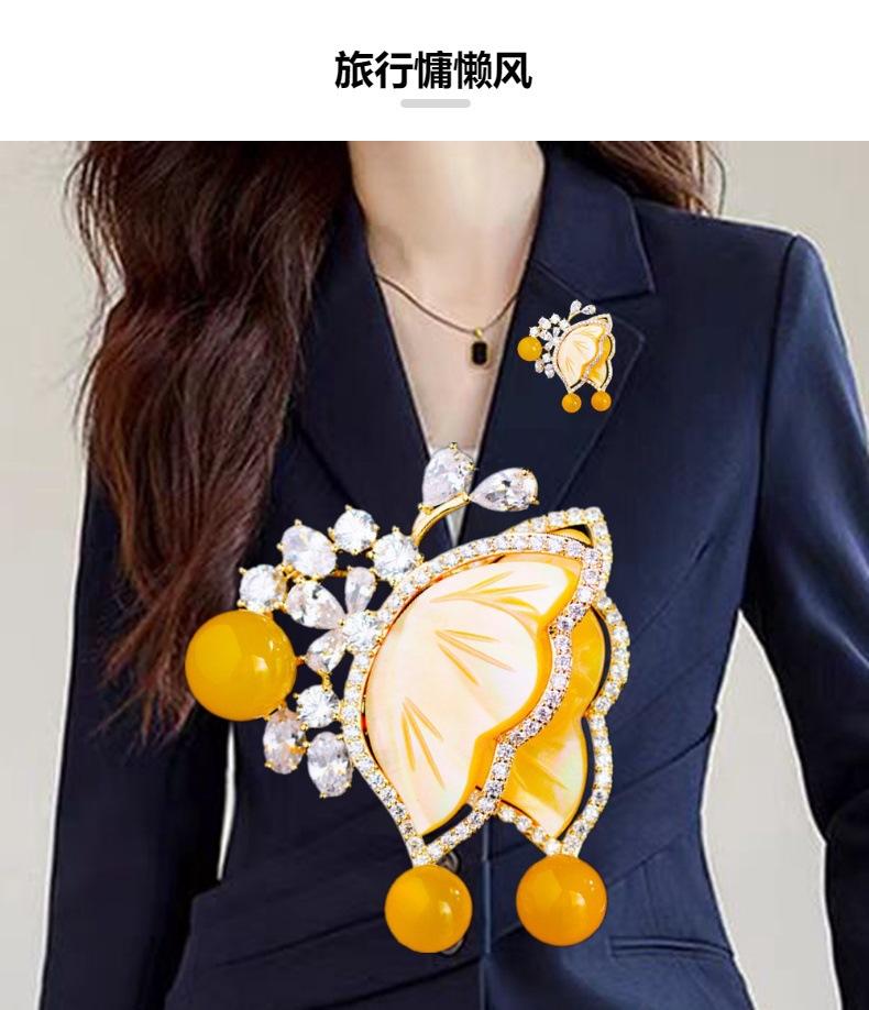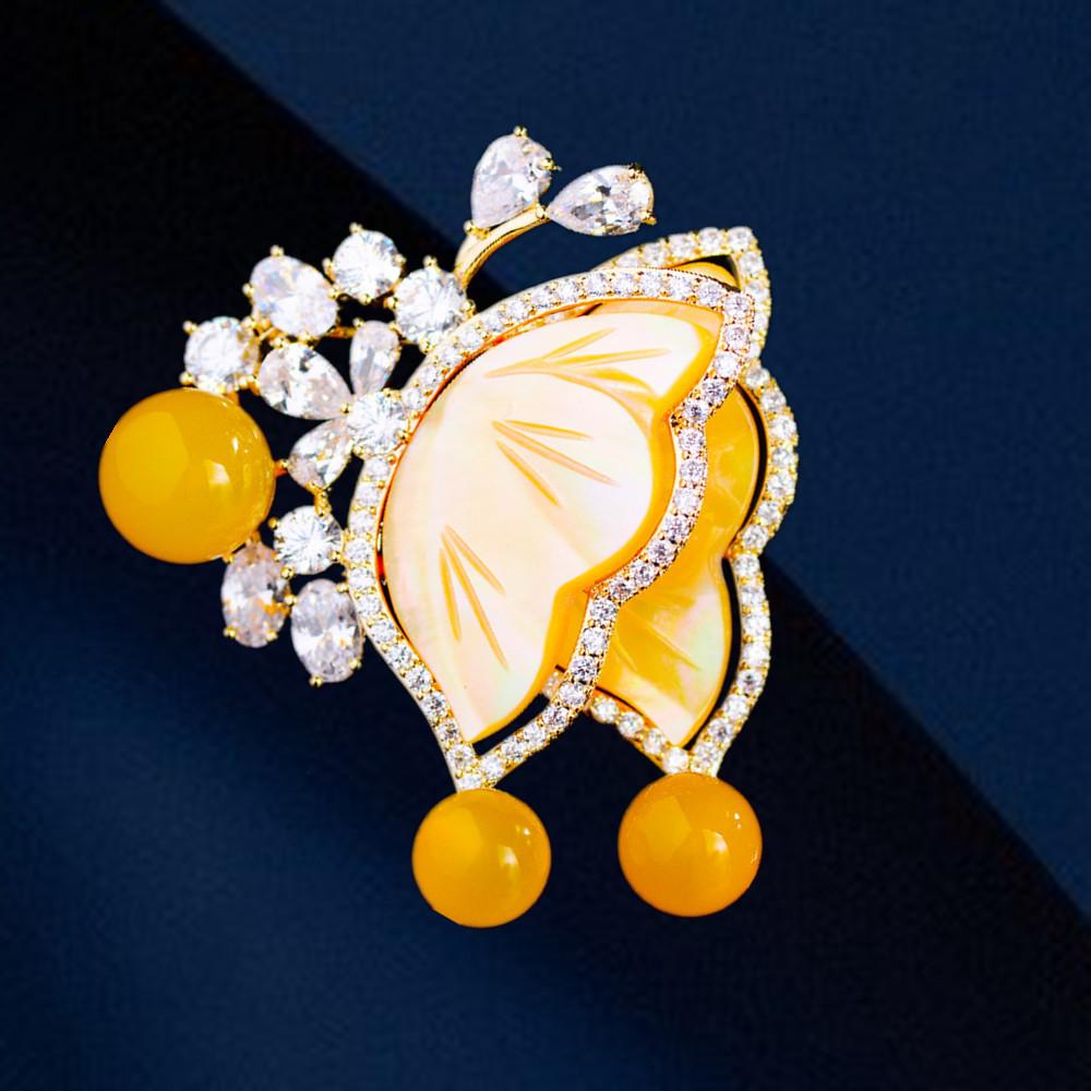 Broche de Concha Estilo Chino Lujo Ligero de Alta Gama con Circonita Incrustada Ramillete Mariposa Versátil Moda Accesorios de Ropa para Mujer Regalo