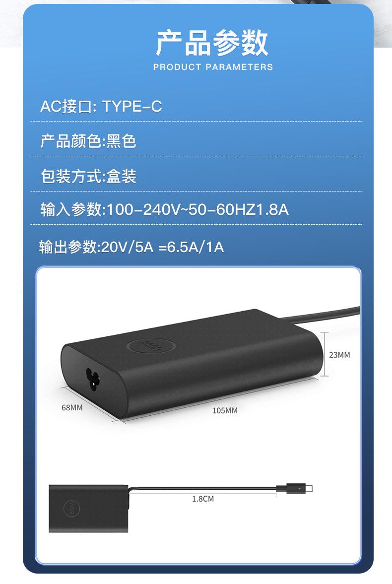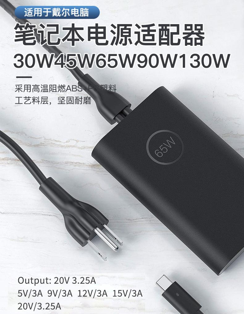 Aplicable a cargador de laptop Dell dell45W 65W 20V3.25 adaptador de corriente para computadora tipo-c