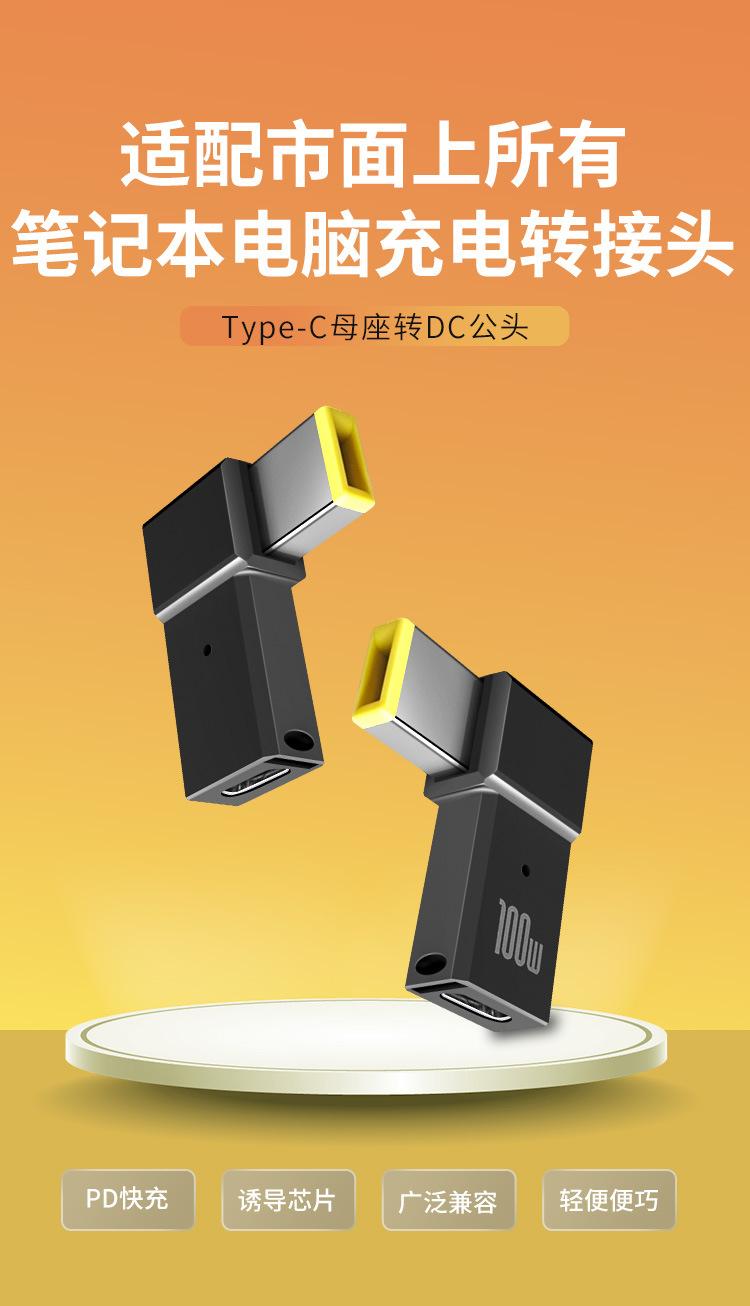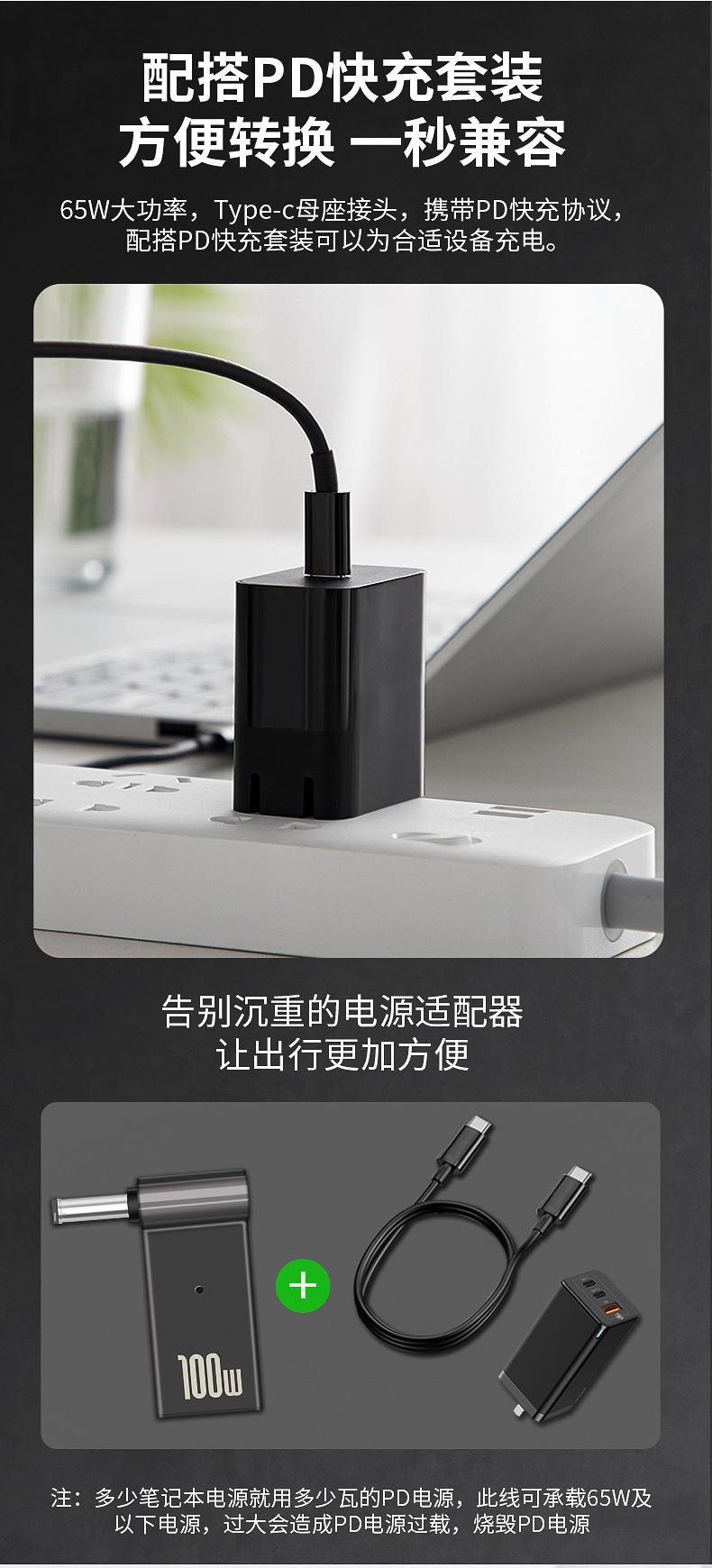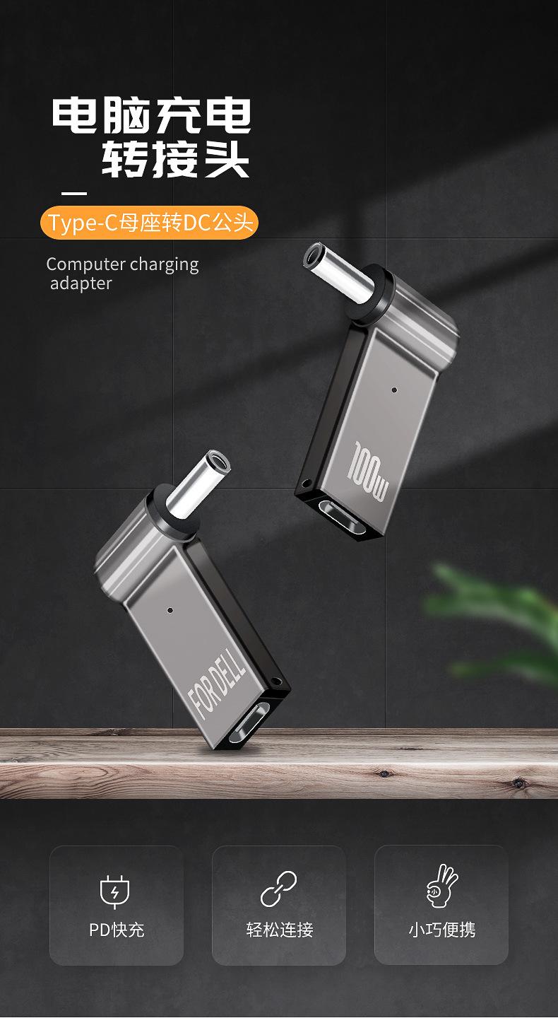 Adaptador de corriente para laptop PD100W adaptador Tipo-c carga rápida PD a cabezal de carga CC