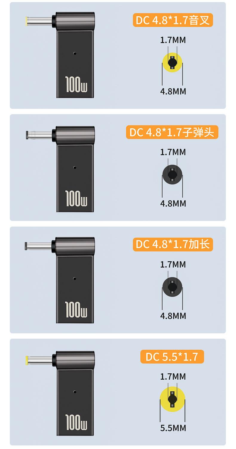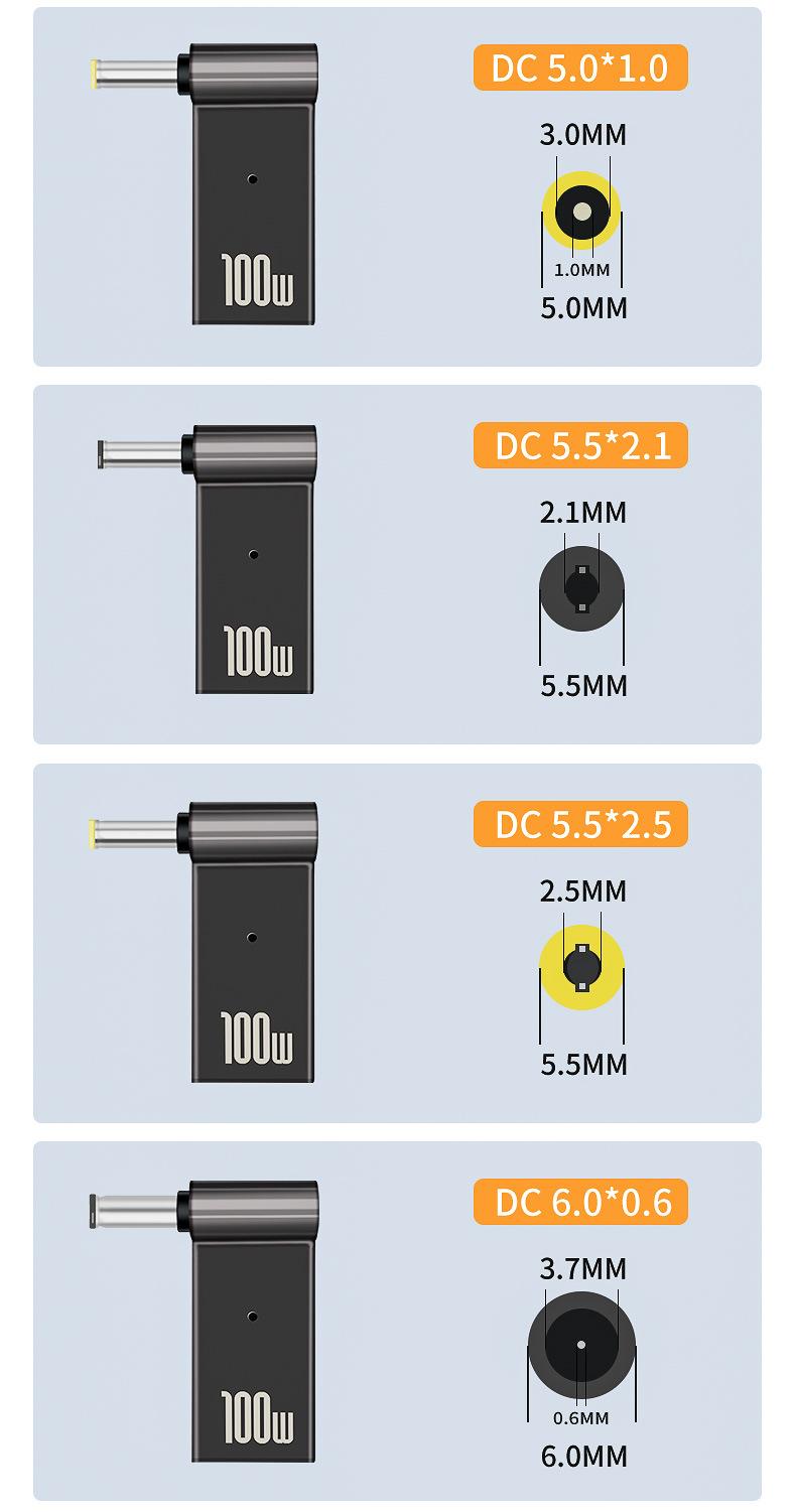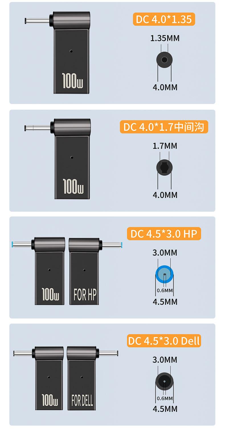 65W-2.5*0.7MM, 65W-4.0*1.7MM, 65W-5.5*1.7MM, 65W-5.5*2.1MM, 65W-5.5*2.5MM, 65W-3.5*1.35MM, 65W-4.0*1.35MM, 65W...