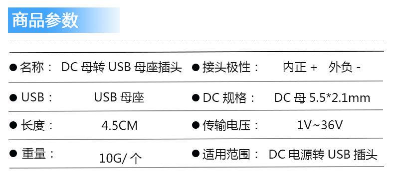 5.5*2.1 female to USB male, 5.5*2.1 female to USB female
