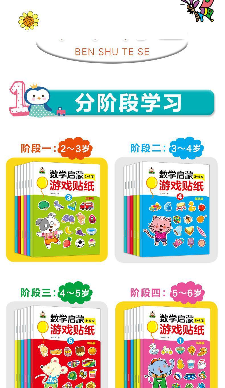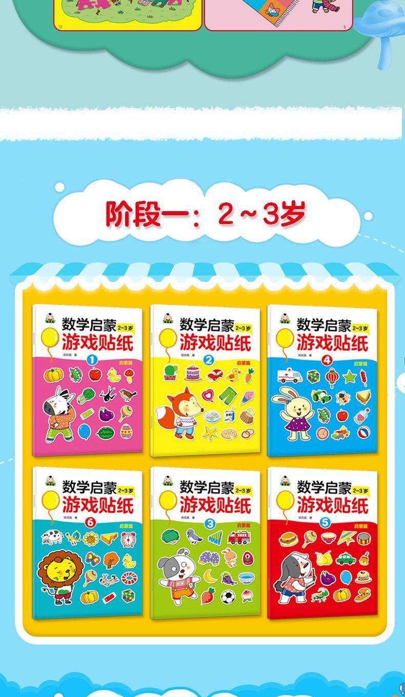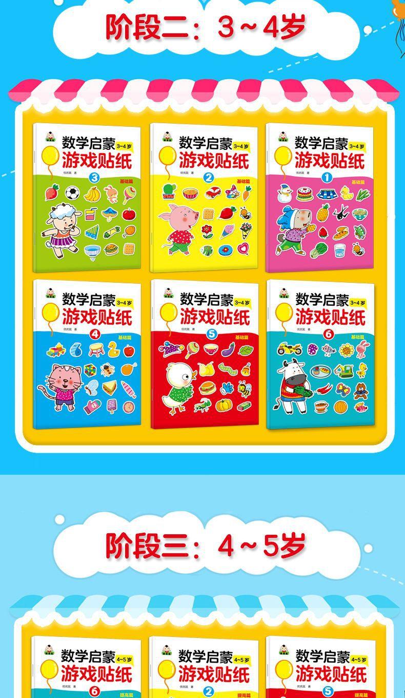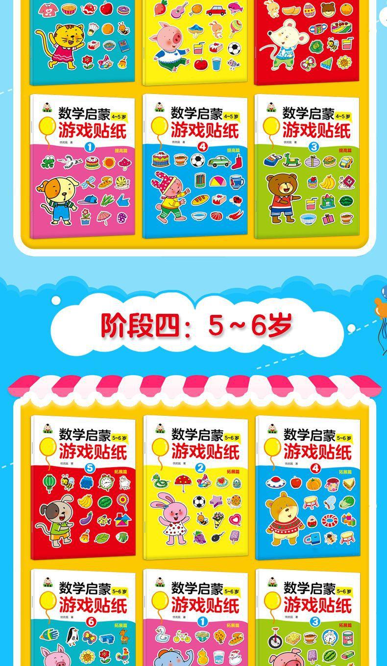 3-6 years old mathematics enlightenment stickers, 6 volumes in total