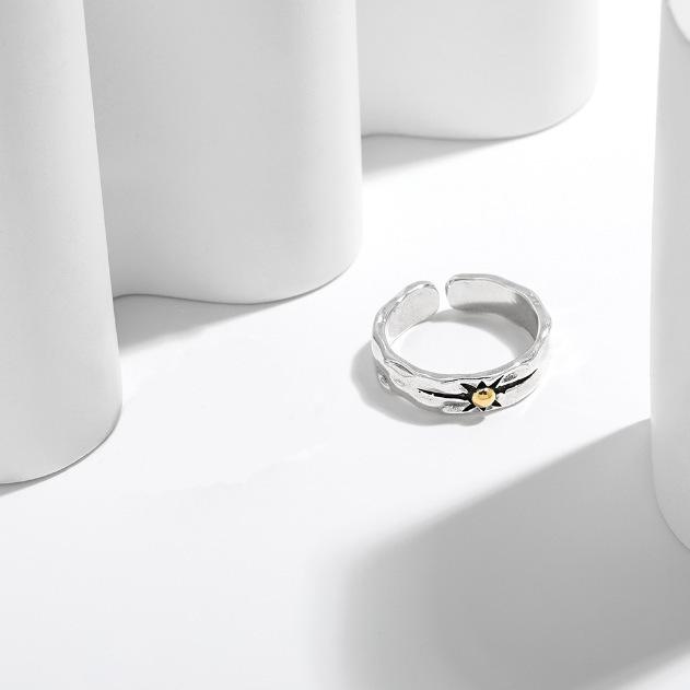 Anillo Retro Americano de Diseño Nuevo 2025 con Rayos de Sol Personalidad Trendy para Hombres y Mujeres Anillo de Dedo Abierto