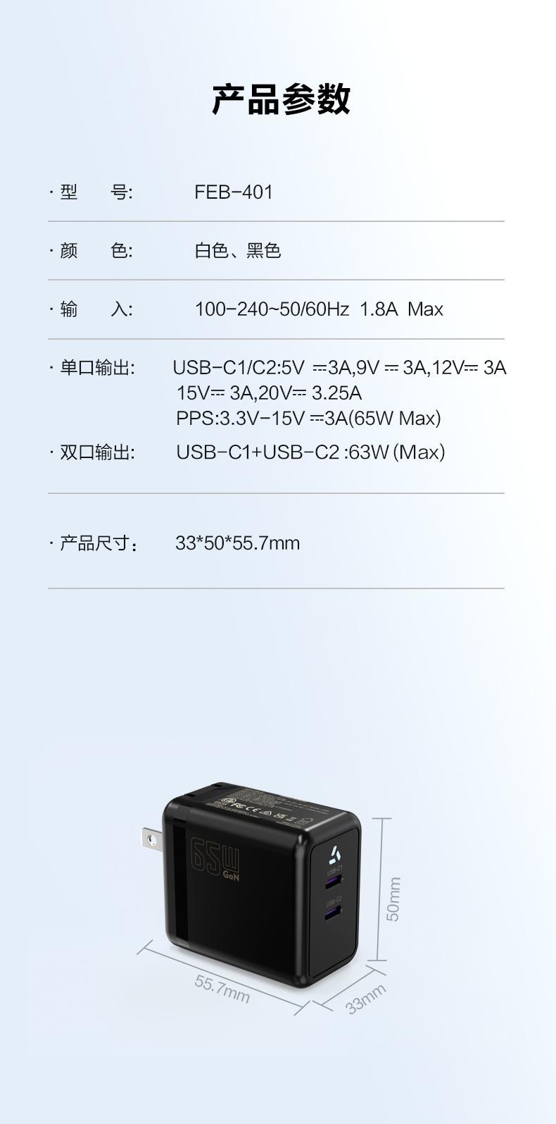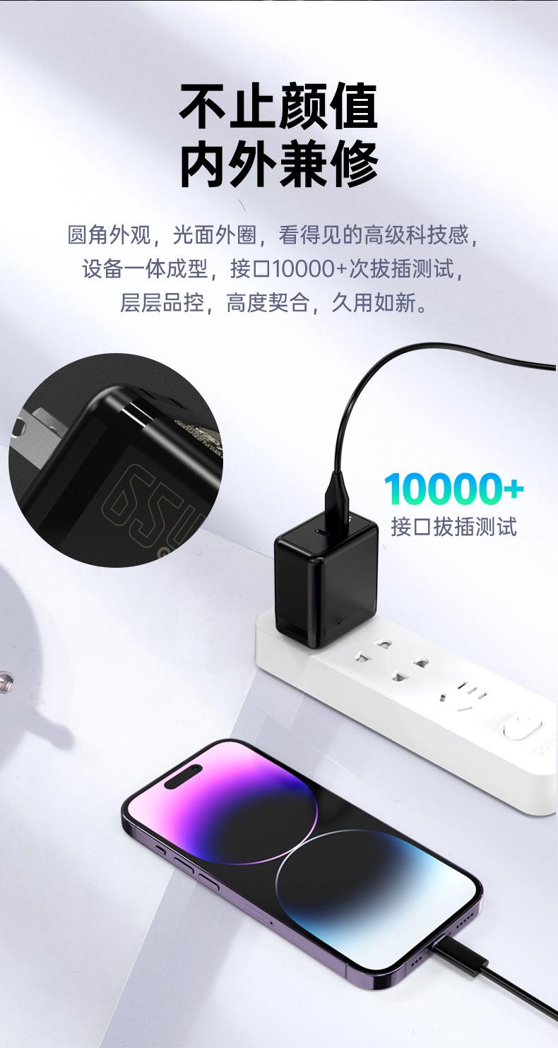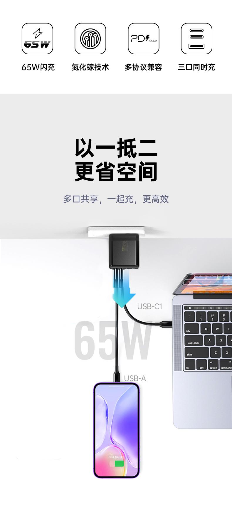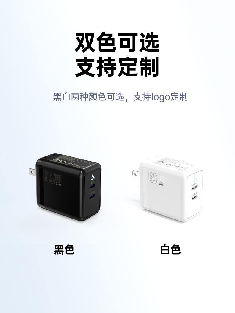 Cargador GaN de 65W US Aplicable a la Certificación ETL de Apple Huawei Doble Puerto C PD Cabezal de Carga Rápida