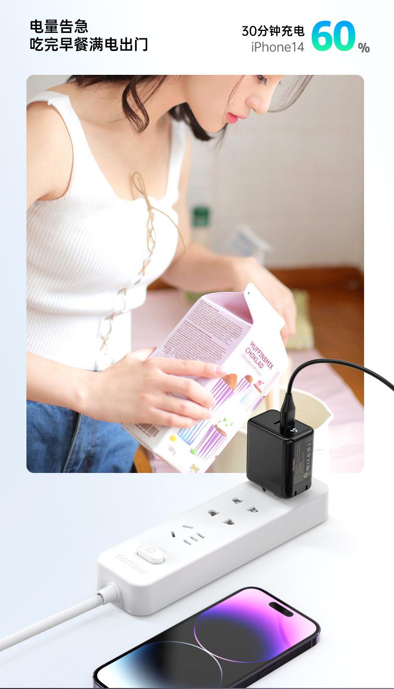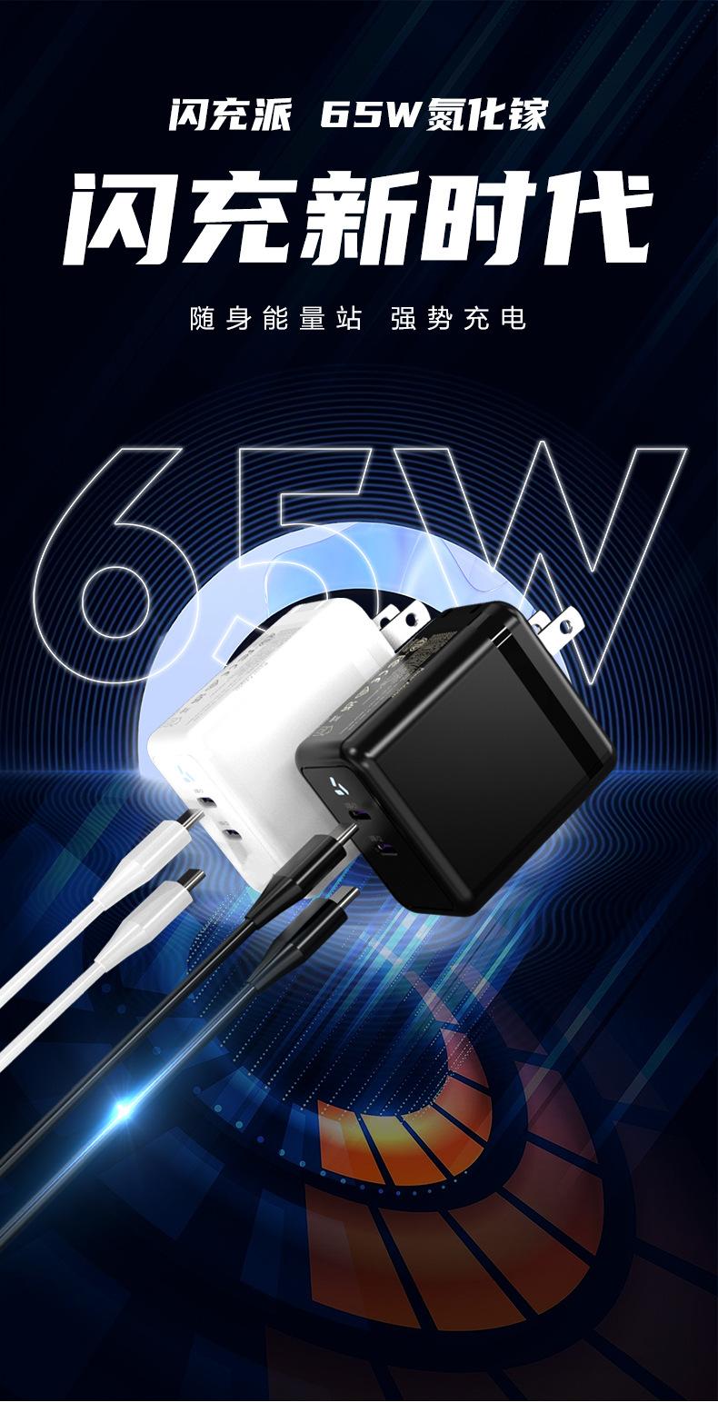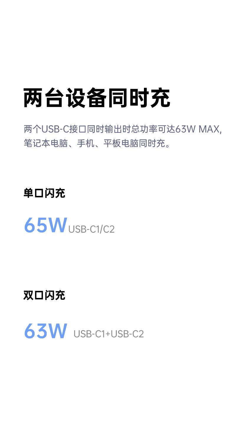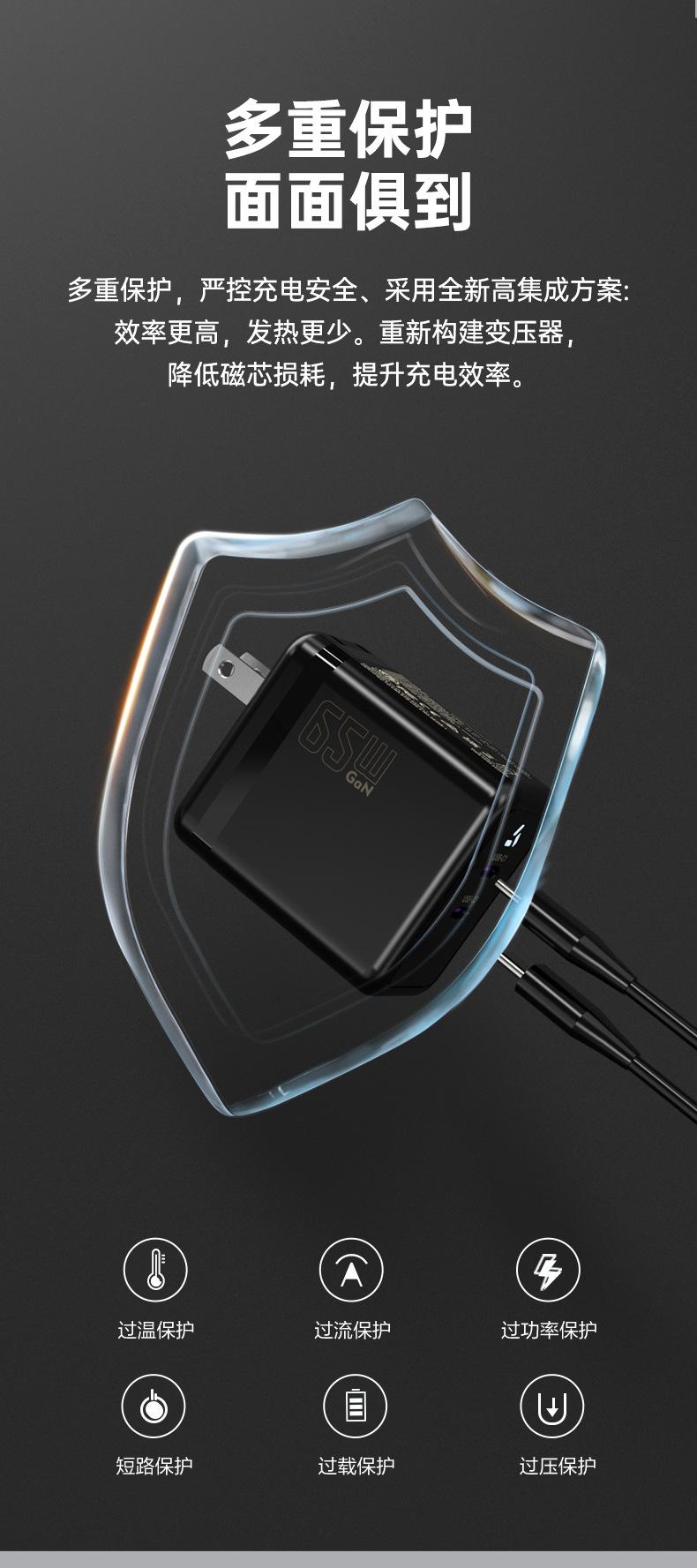 Cargador GaN de 65W US Aplicable a la Certificación ETL de Apple Huawei Doble Puerto C PD Cabezal de Carga Rápida