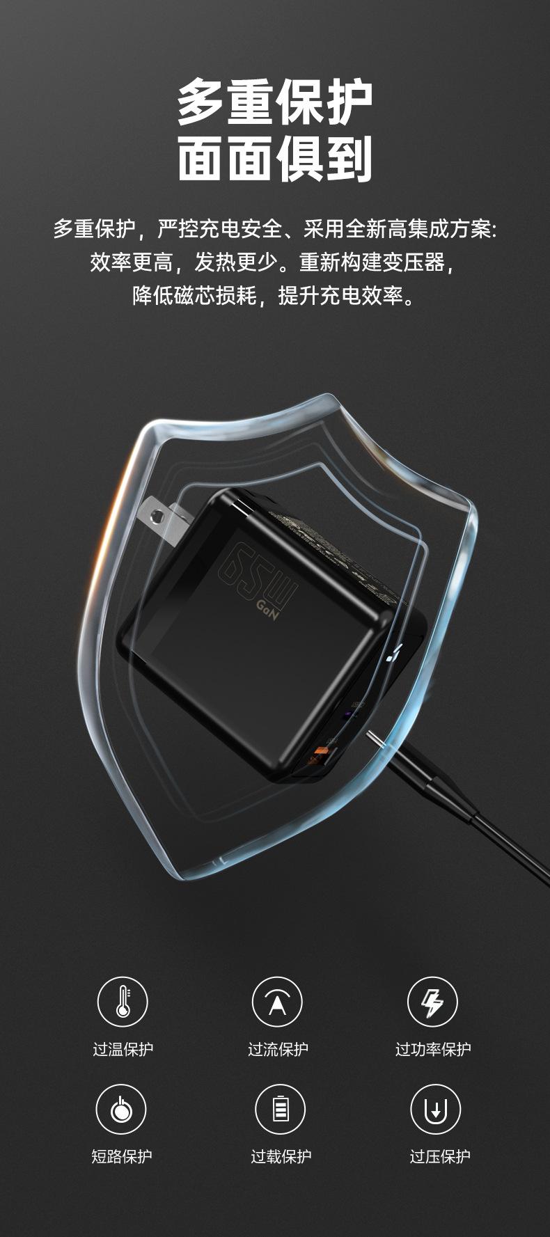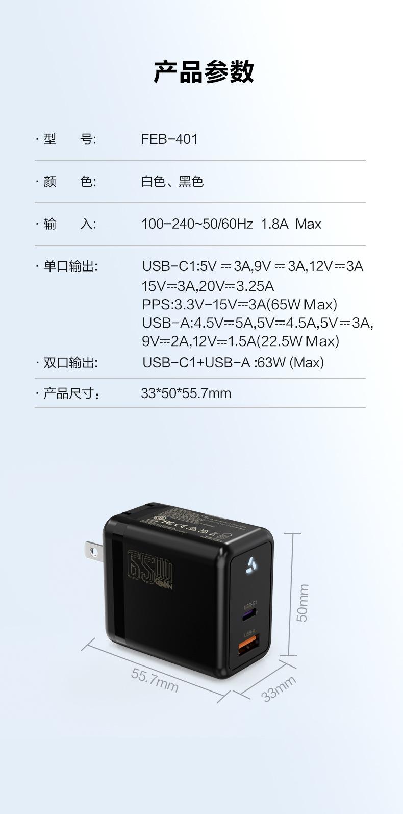 Cargador Plegable Estándar US de Nitruro de Galio de 65 W Adaptador Universal Multidispositivo para Teléfono Móvil y Computadora Certificación Estándar US ETL