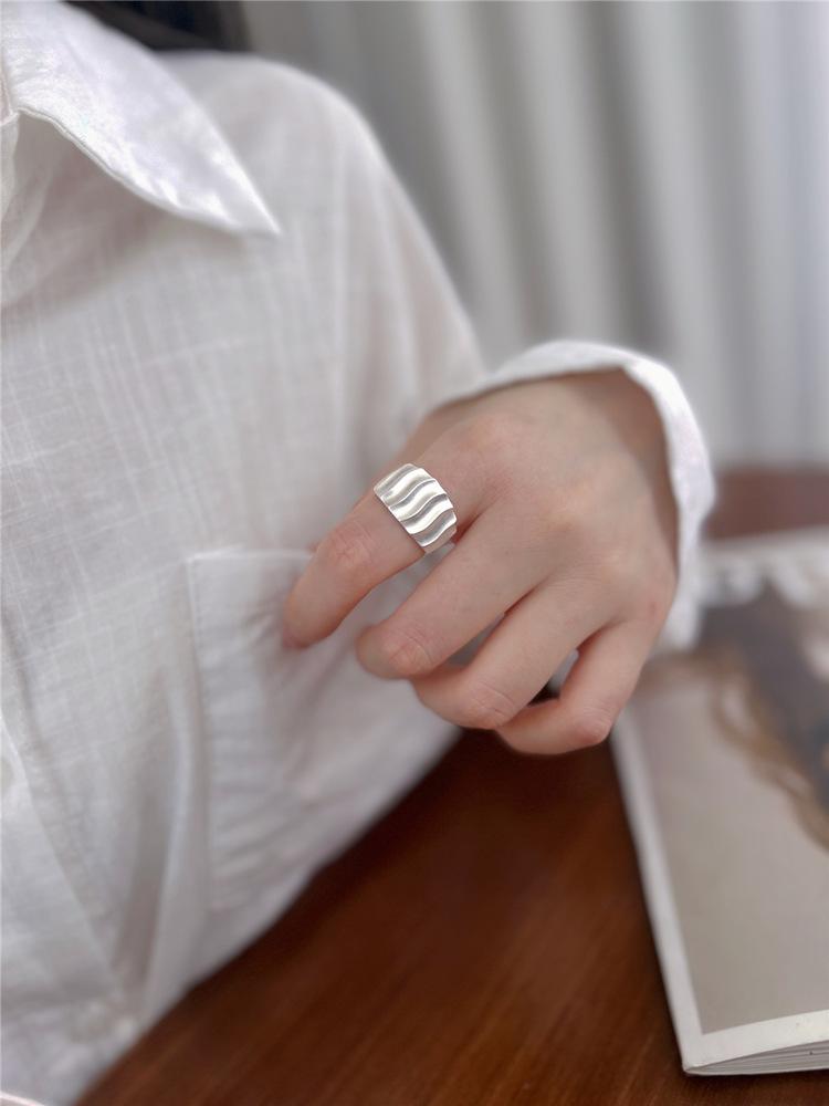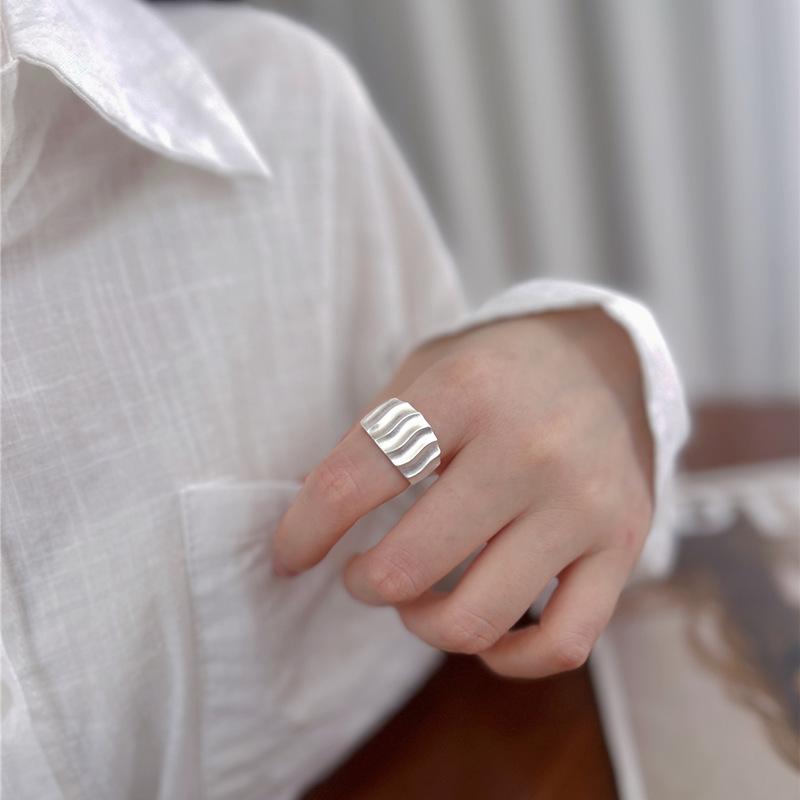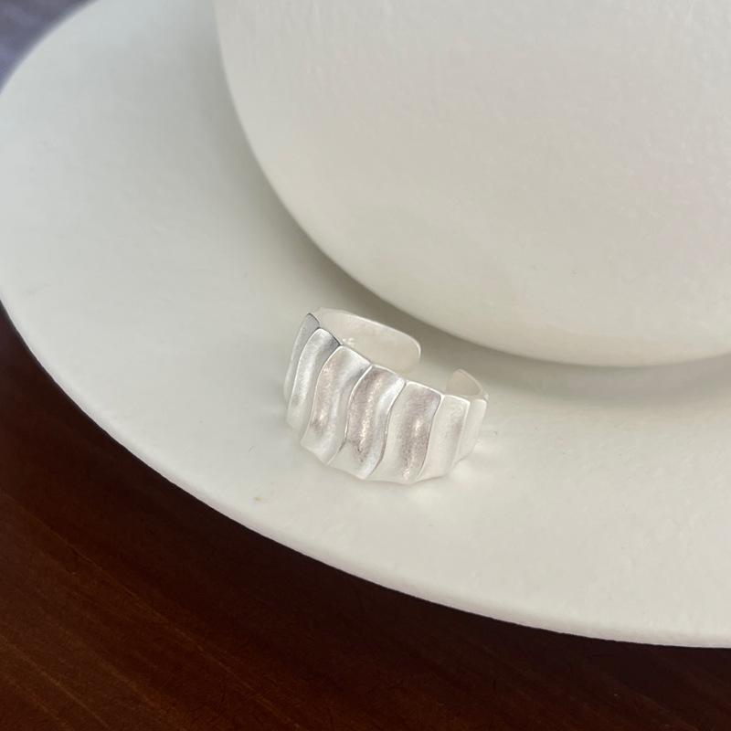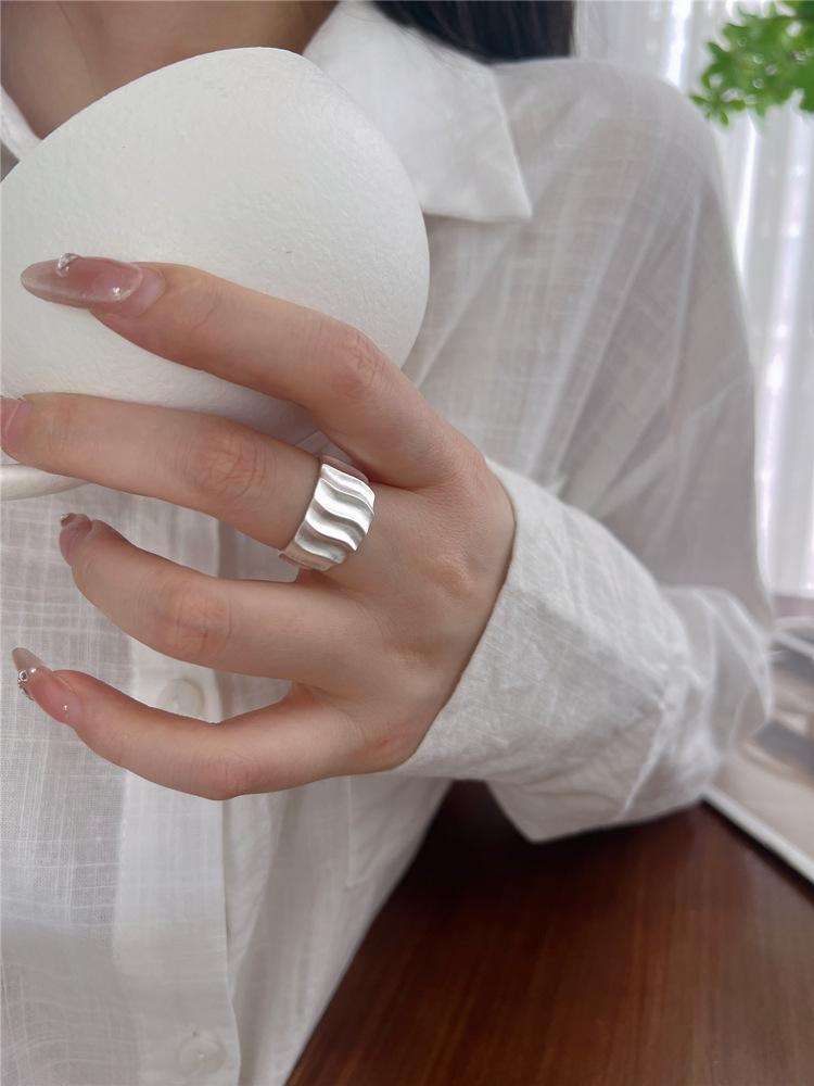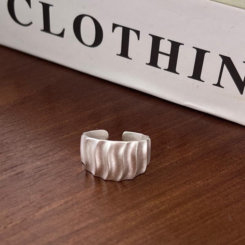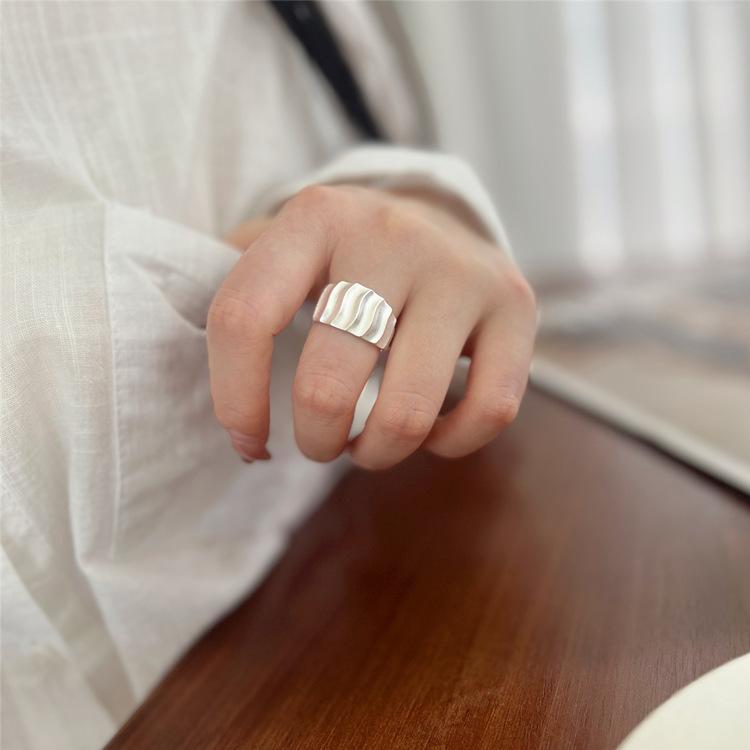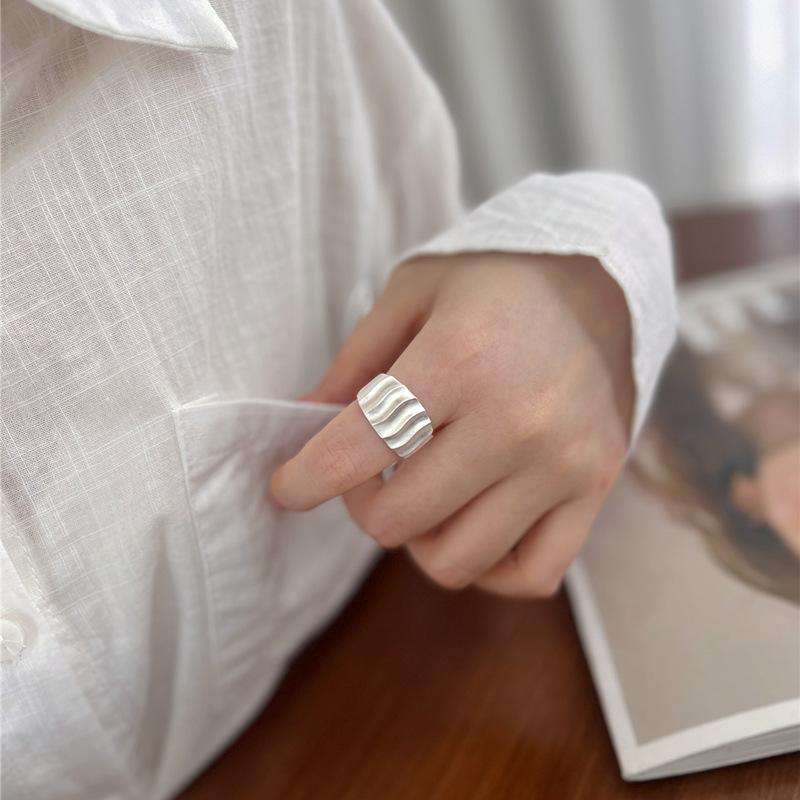 Diseño Nicho Anillo Mate Plisado para Mujer Moda Mate Versátil Temperamento Anillo Abierto para Dedo Índice Personalidad Rojo de Internet