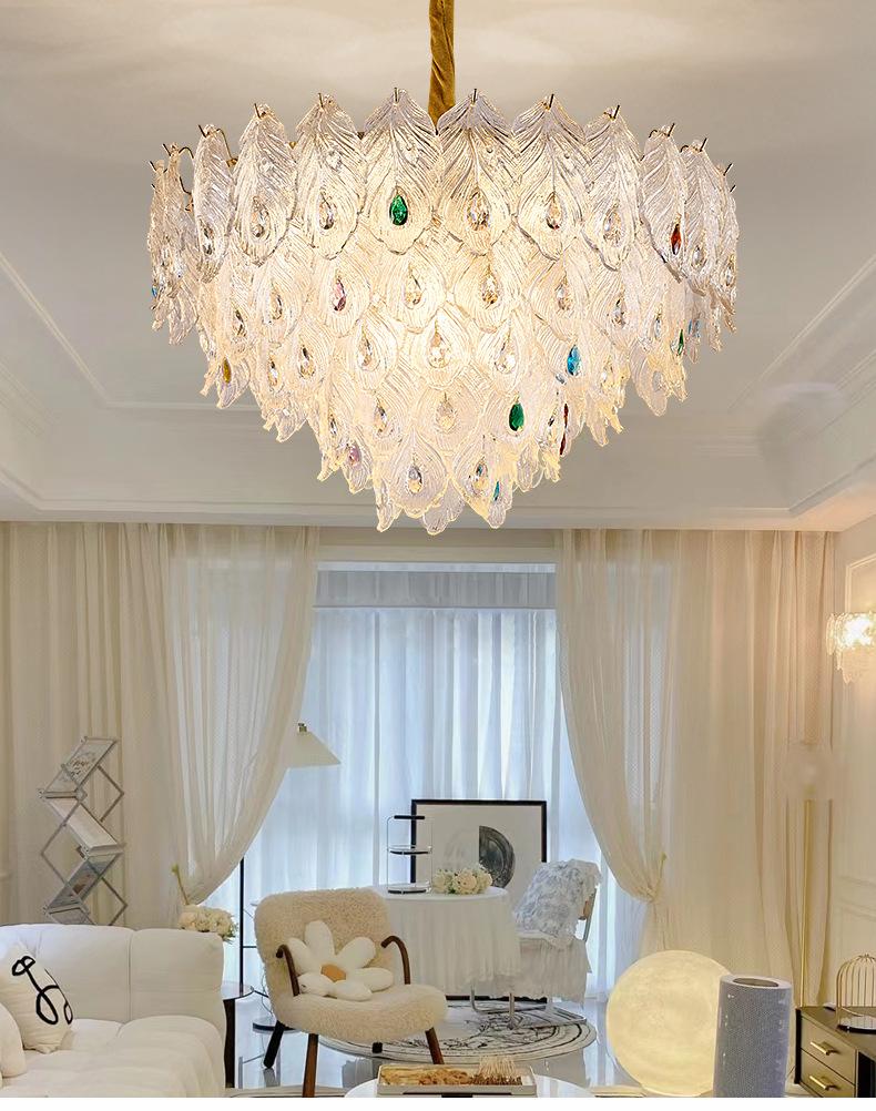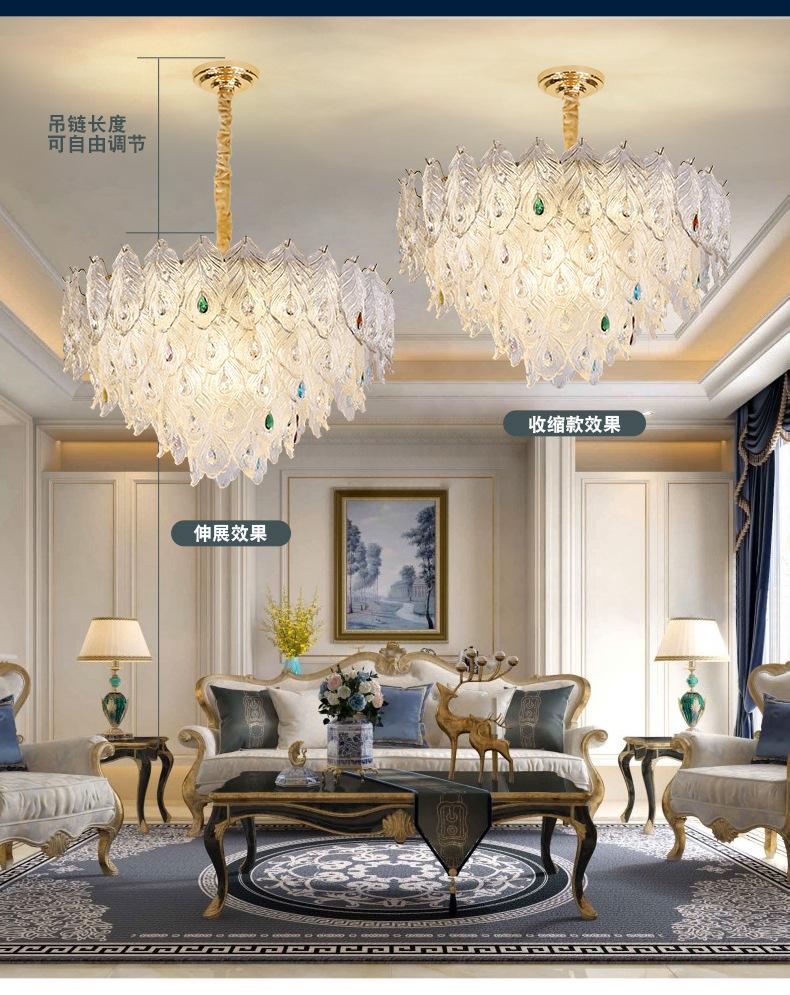 2025 Nueva Lámpara de Sala de Estar Lámpara de Araña de Cristal de Alta Gama Atmosférica Lámpara de Araña para Restaurante Lujo Ligero Francés Luz Principal de Pasillo de Alta Gama