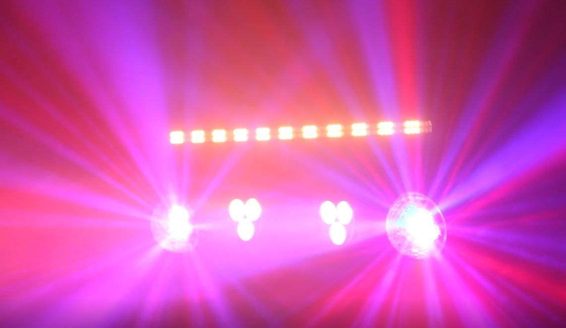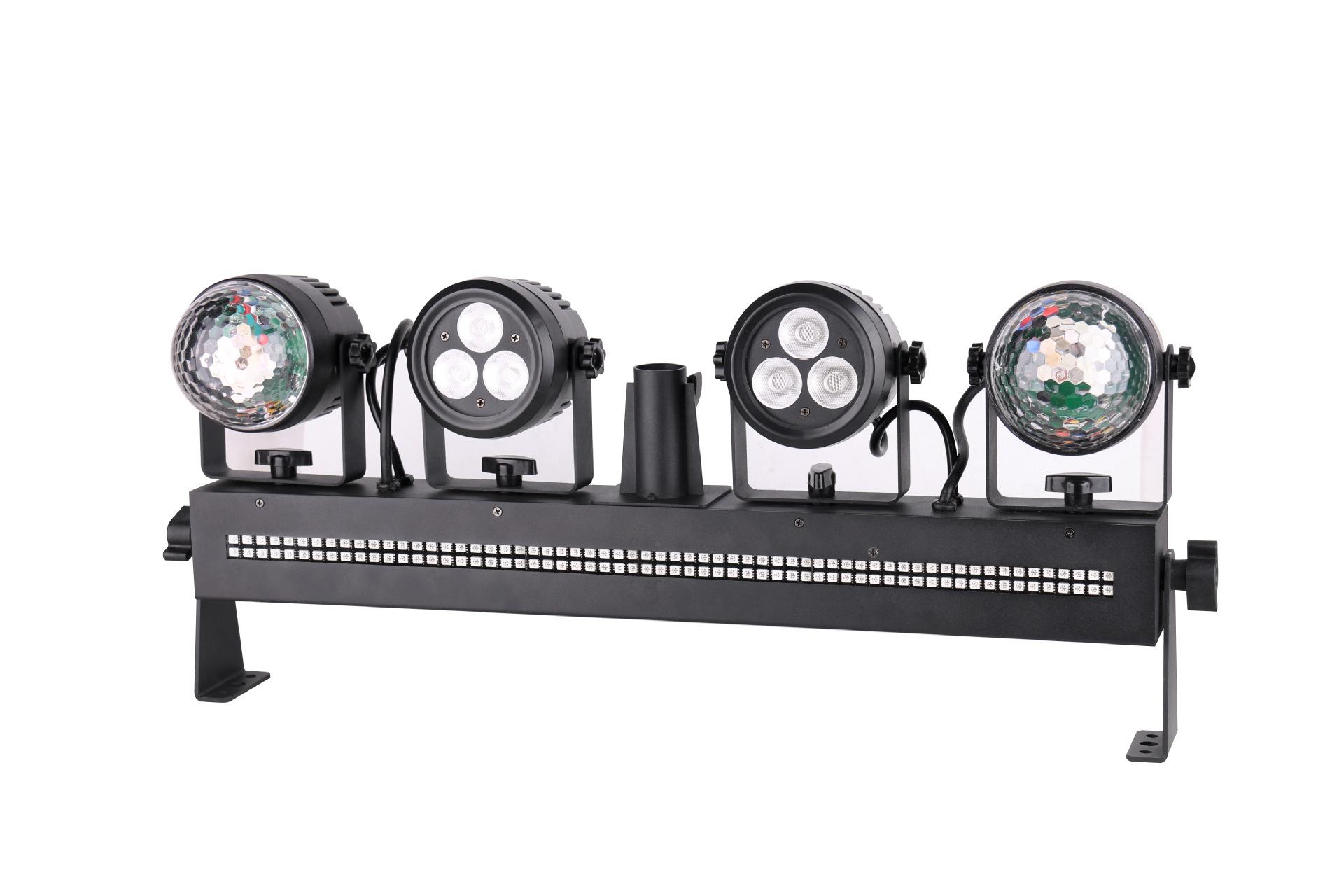 Luz láser LED de cuatro en uno para escenario, control remoto, luz de bola mágica, luz estroboscópica para bar KTV