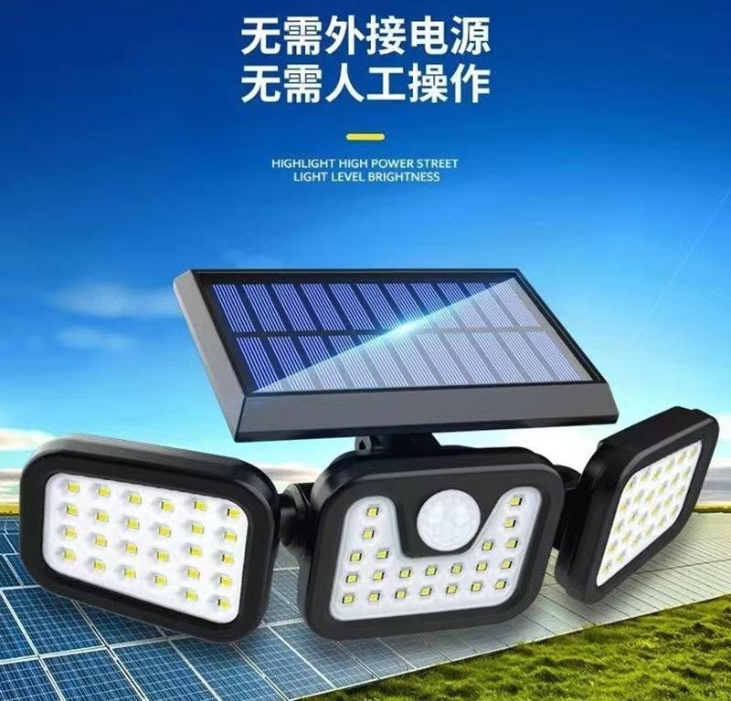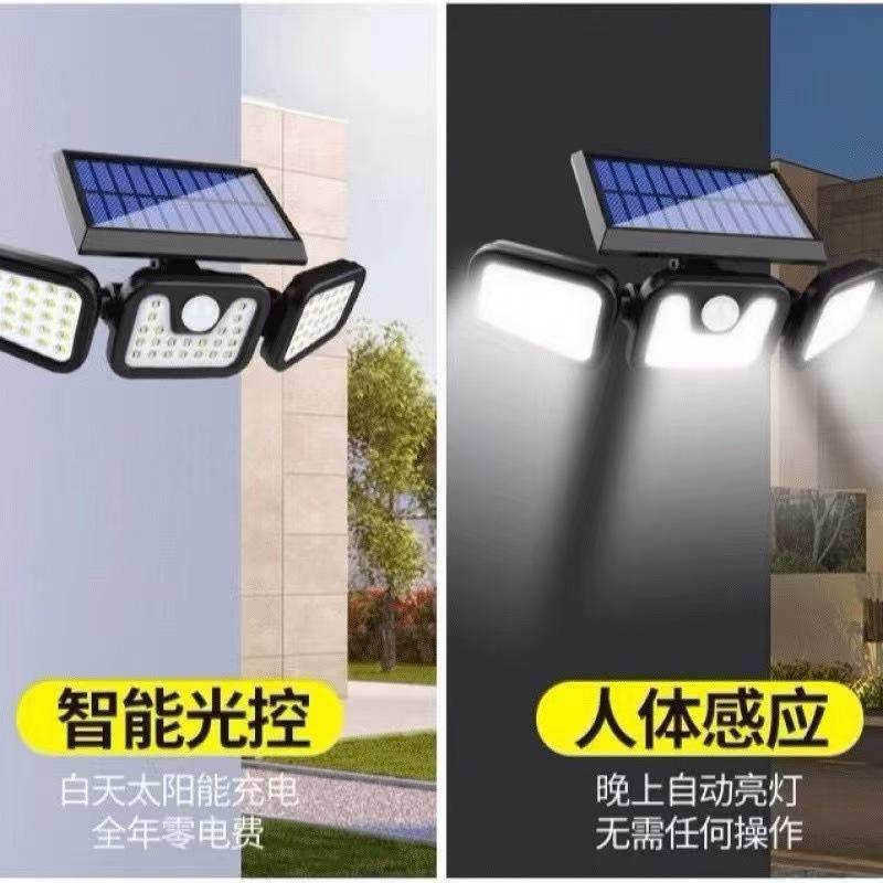 Lámpara de Pared Ajustable de Tres Cabezales Solar Personalizada Nueva Iluminación Exterior Lámpara de Calle Luz Nocturna para Patio Lámpara de Pared para Valla