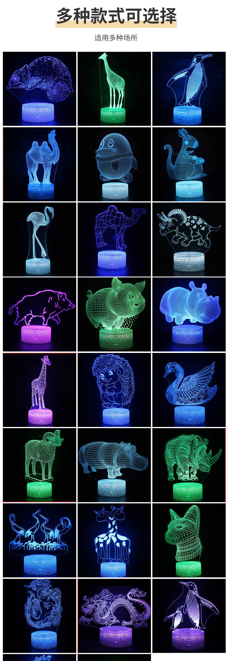 Compra Serie Animal Transfronteriza Lámpara de Mesa 3D Lámpara de Ambiente LED Regalo Creativo Luz Nocturna Colorida Estéreo Visual al por mayor en Joom.pro