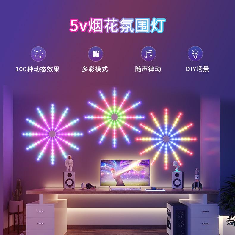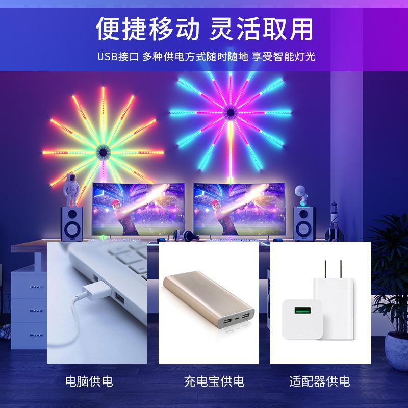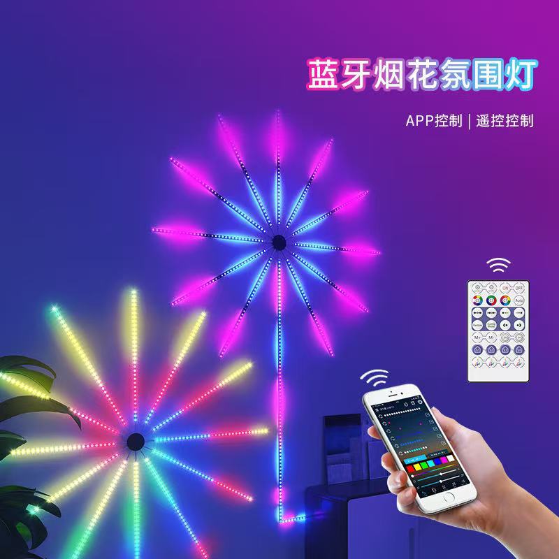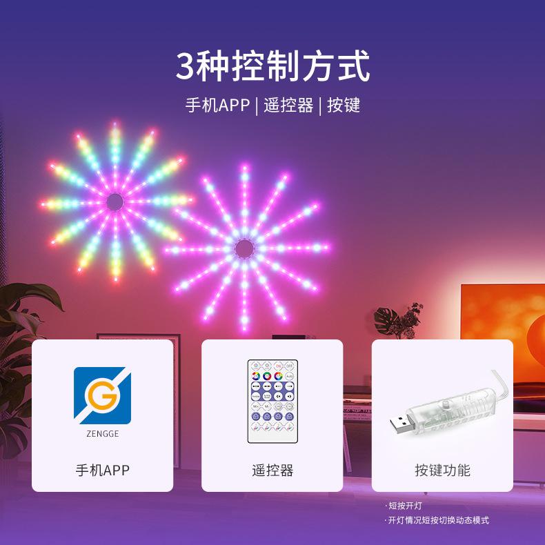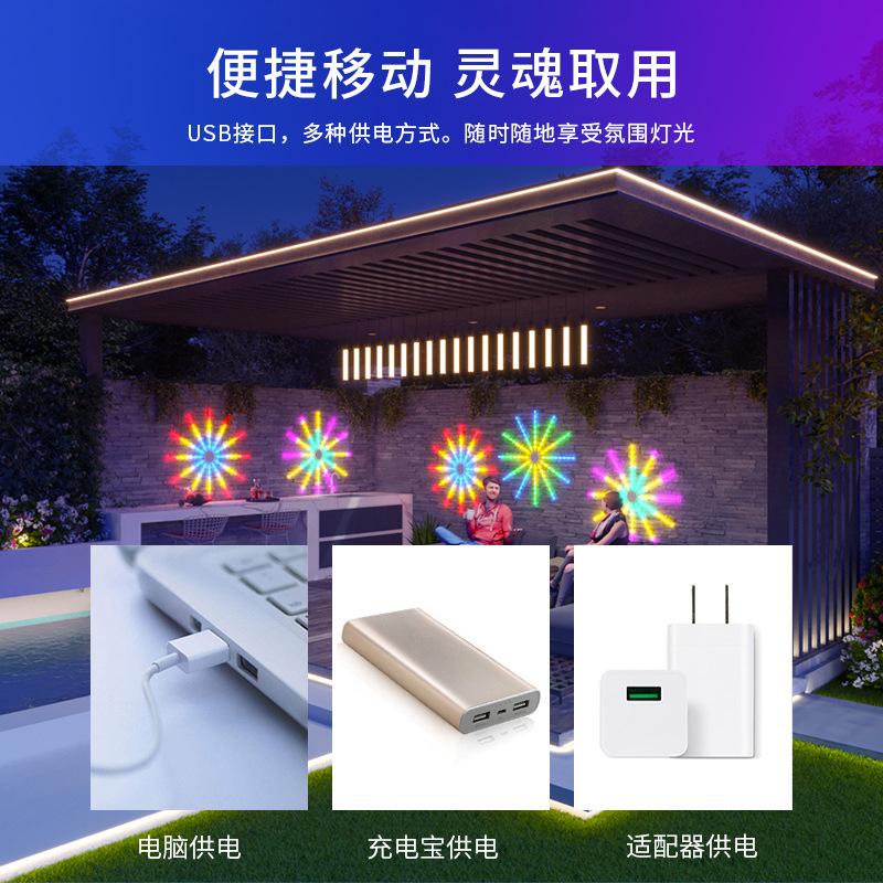 Luz de Fuegos Artificiales con Ventilador LED Ajuste Multimodo Control por APP Decoración de Festival USB Caballo Corriendo a Todo Color Atmósfera Bluetooth