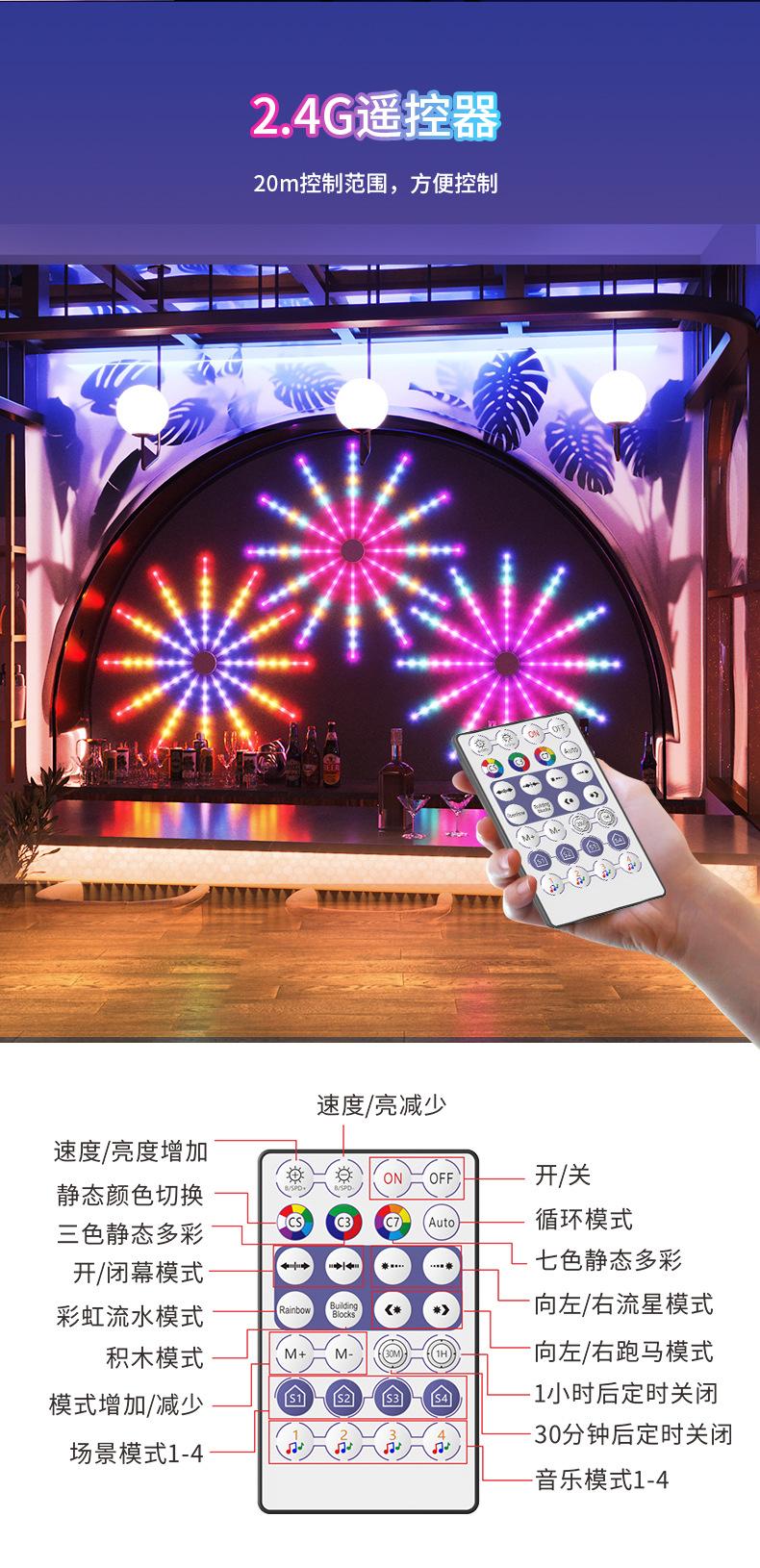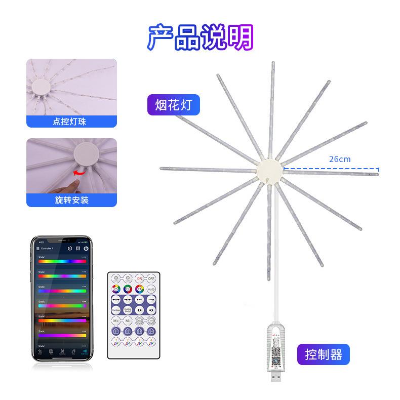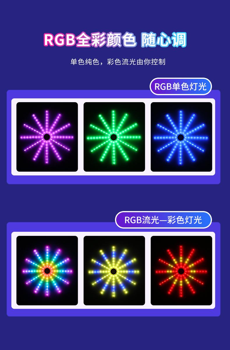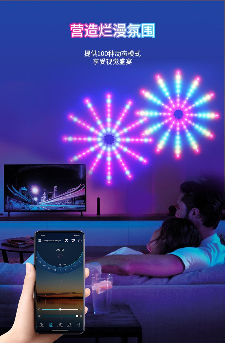 Luz de Fuegos Artificiales con Ventilador LED Ajuste Multimodo Control por APP Decoración de Festival USB Caballo Corriendo a Todo Color Atmósfera Bluetooth
