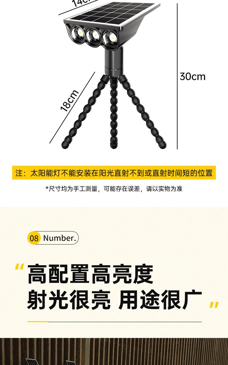 Foco solar de césped de 3 LED transfronterizo iluminación decorativa para patio rural luz para árbol luz solar de pulpo