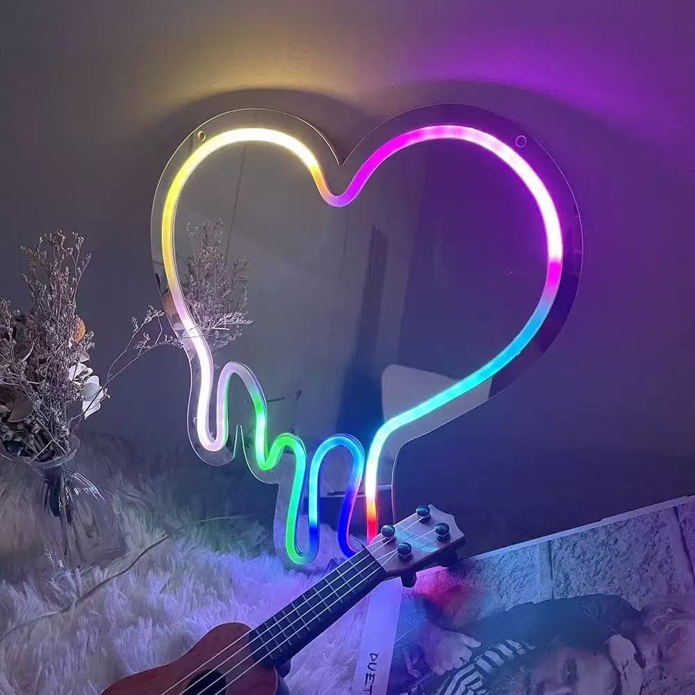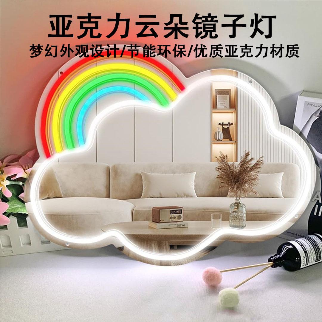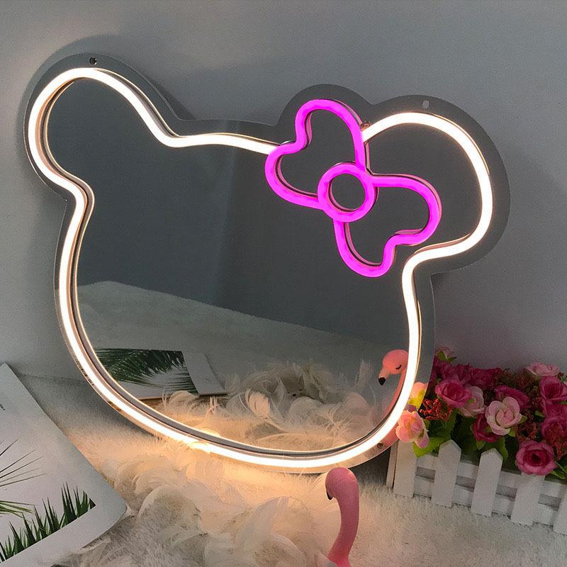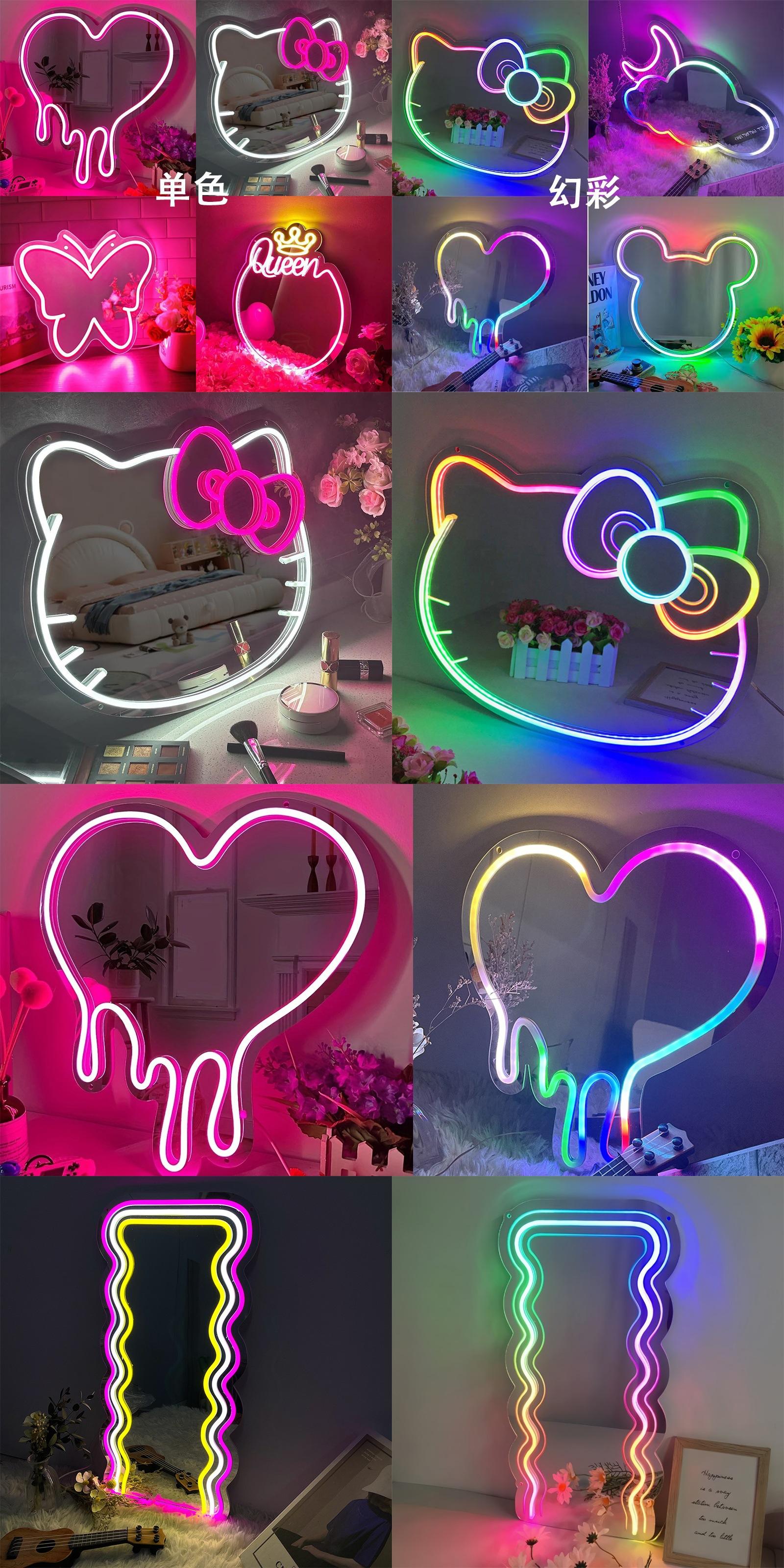 Luz de Neón LED Espejo Acrílico Luz Decorativa Espejo de Maquillaje Creativo Luz de Ambiente Luz de Relleno Luminosa Espejo