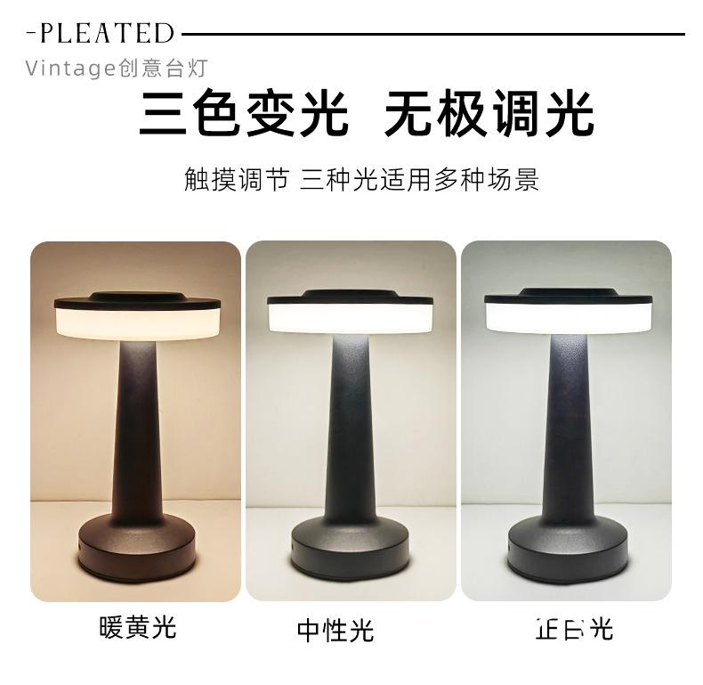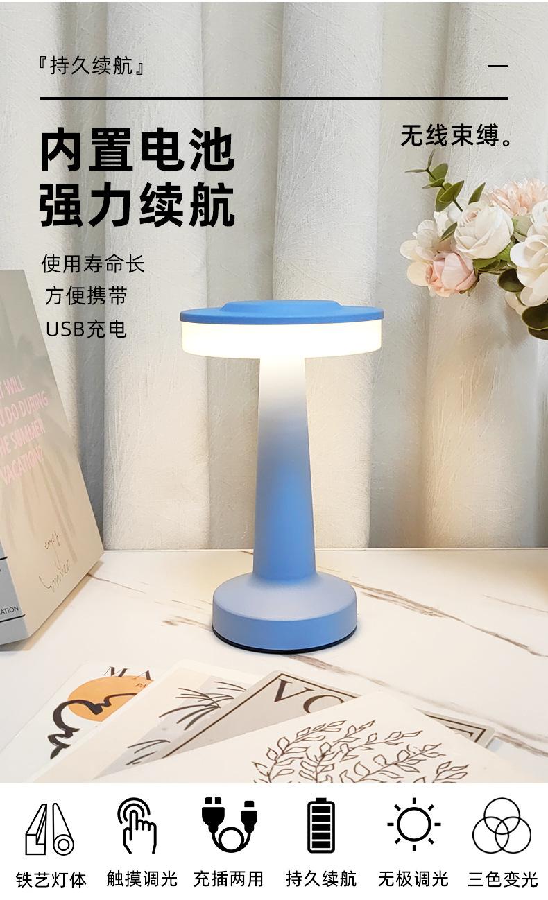 Lámpara de Mesa Decorativa Recargable Luz Nocturna con Sensor de Ambiente Nórdico Hierro Mancuerna Retro Mesita de Noche Dormitorio Lámpara de Mesa Multifuncional