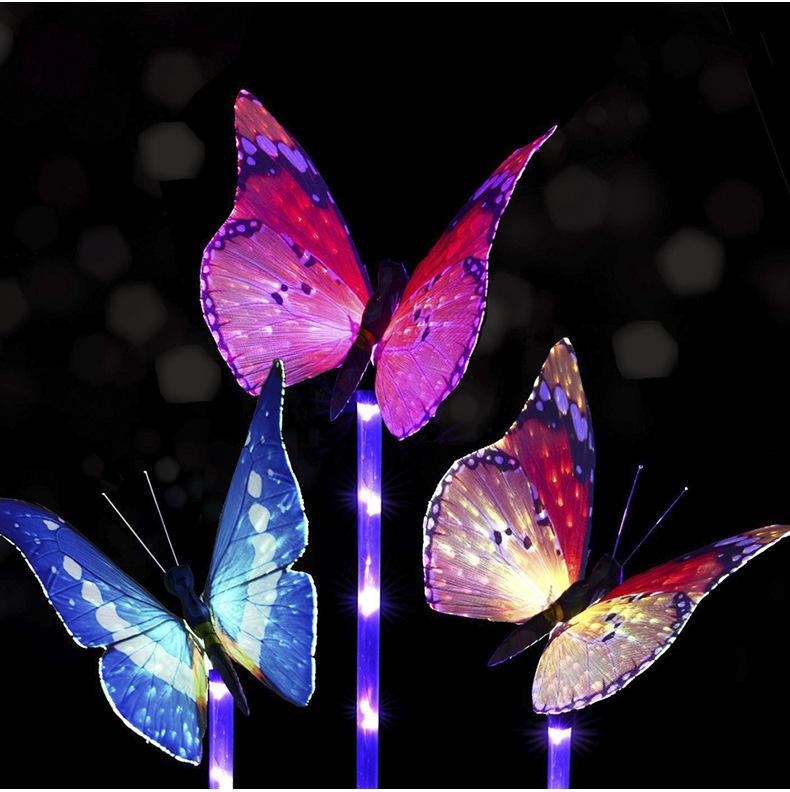 Luces de Mariposa de Fibra Óptica Luces de Suelo Transfronterizas Decoración de Patio Exterior Impermeable Jardín Plaza Ambiente Luces Solares de Césped
