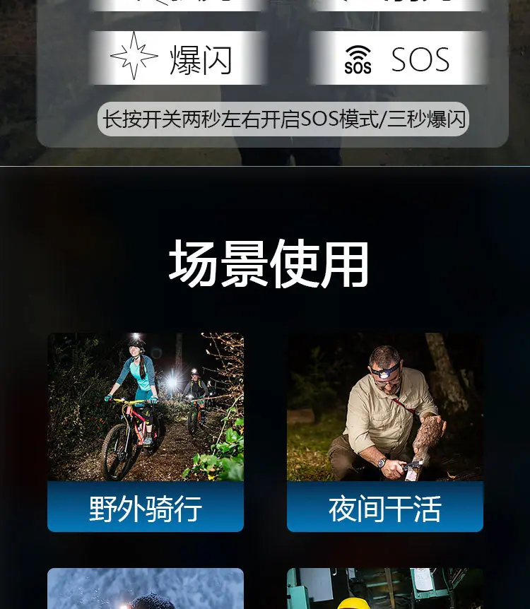 Diving, Hike, Camping, Self-defense, Teaching, Daily carry, Night riding, Caving, Night fishing, Patrol