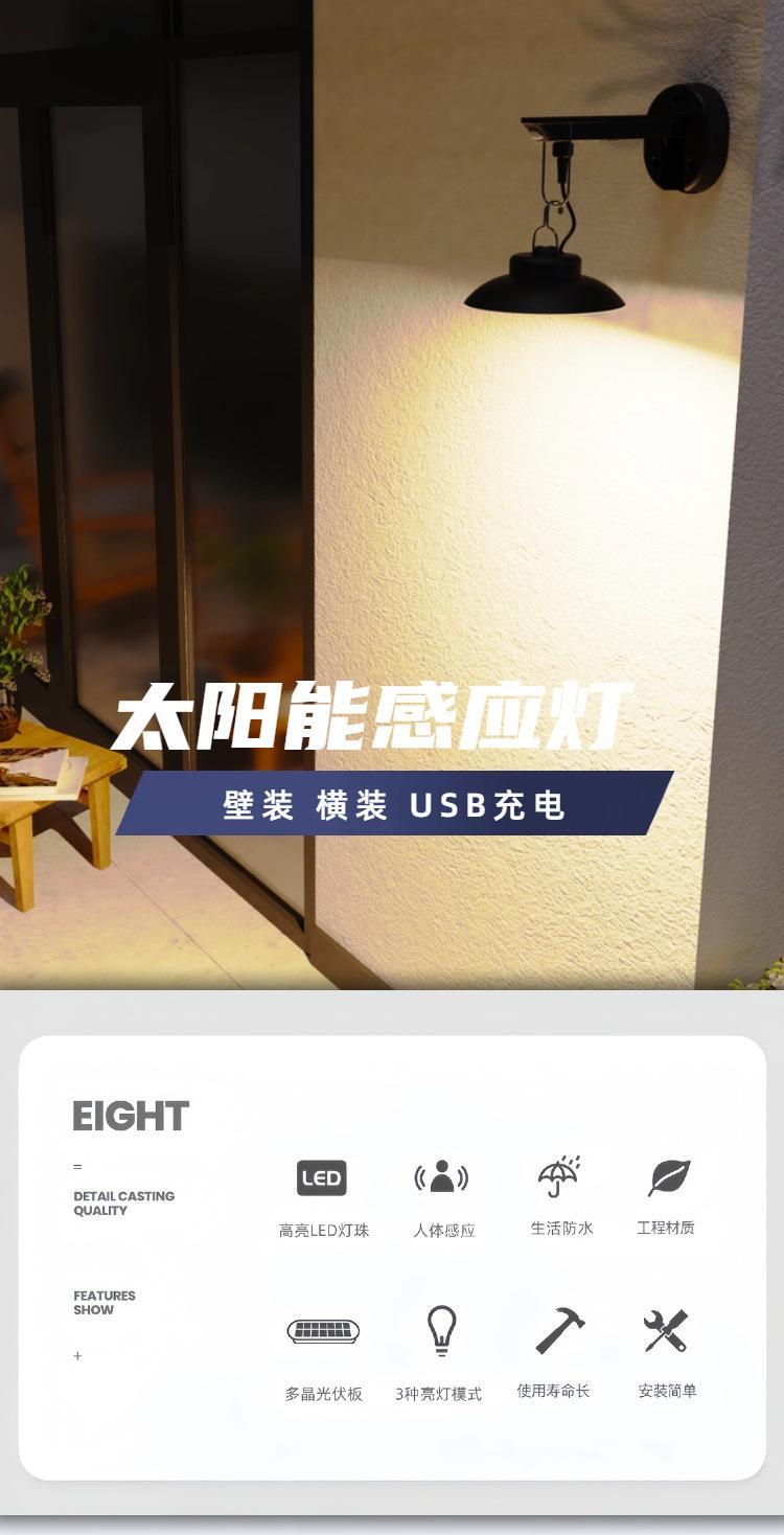Luz Solar Exterior Transfronteriza Luz de Patio Exterior Luz de Pared con Inducción Iluminación Retro para el Hogar Luz Solar Exterior