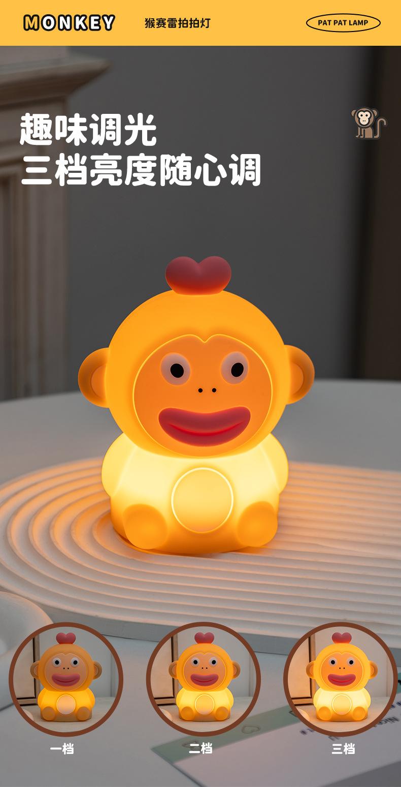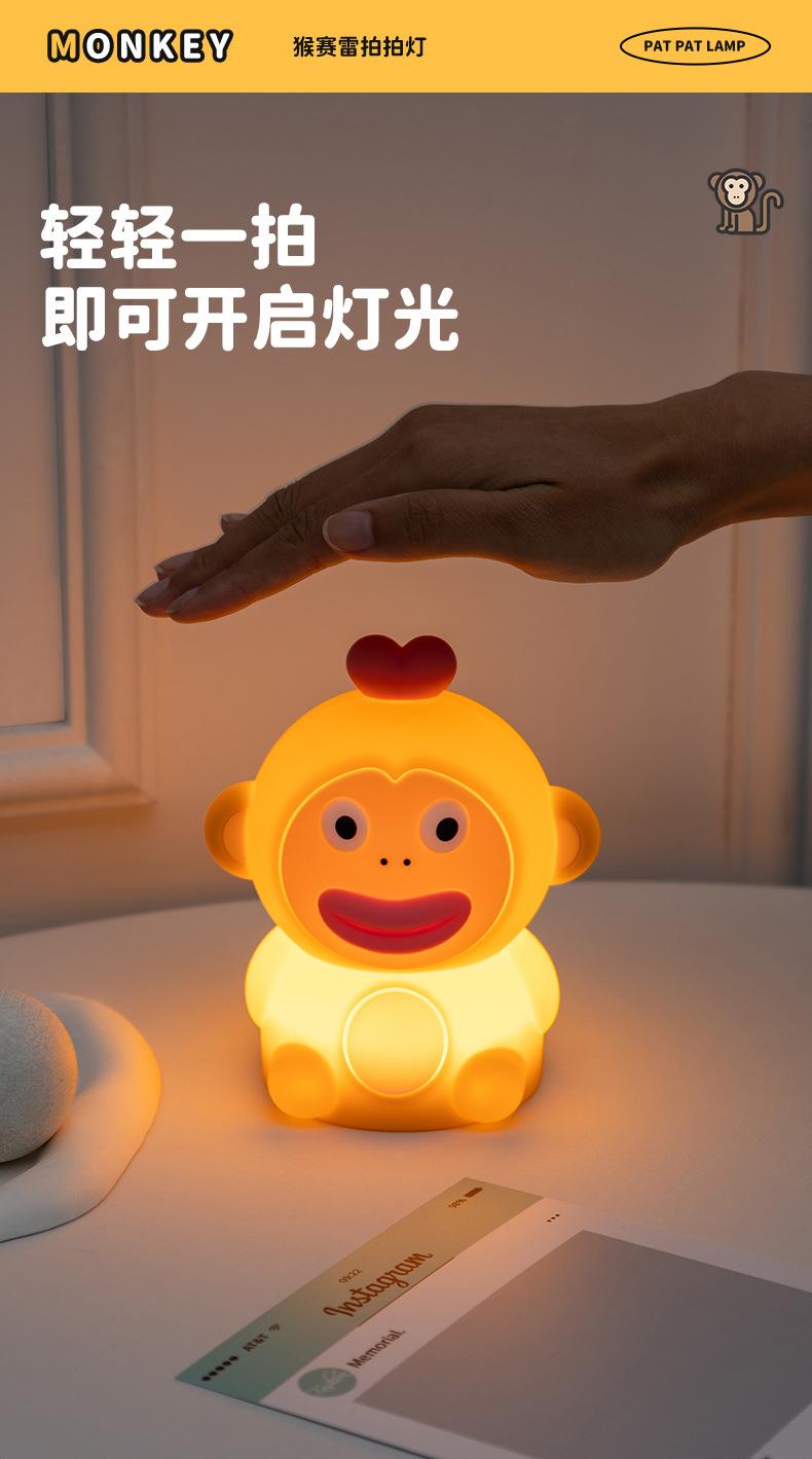 Luz Nocturna Creativa y Linda de Mono Sai Lei Adorno de Escritorio para Dormitorio Luz de Palmadita Carga USB Lámpara de Silicona Decorativa de Atmósfera