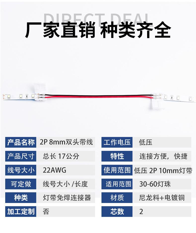 Compra Conector de barra de luz monocromática 2835 soldadura sin soldadura terminal de acoplamiento rápido tira de luz monocromática 8 mm de doble cabeza con cable al por mayor en Joom.pro