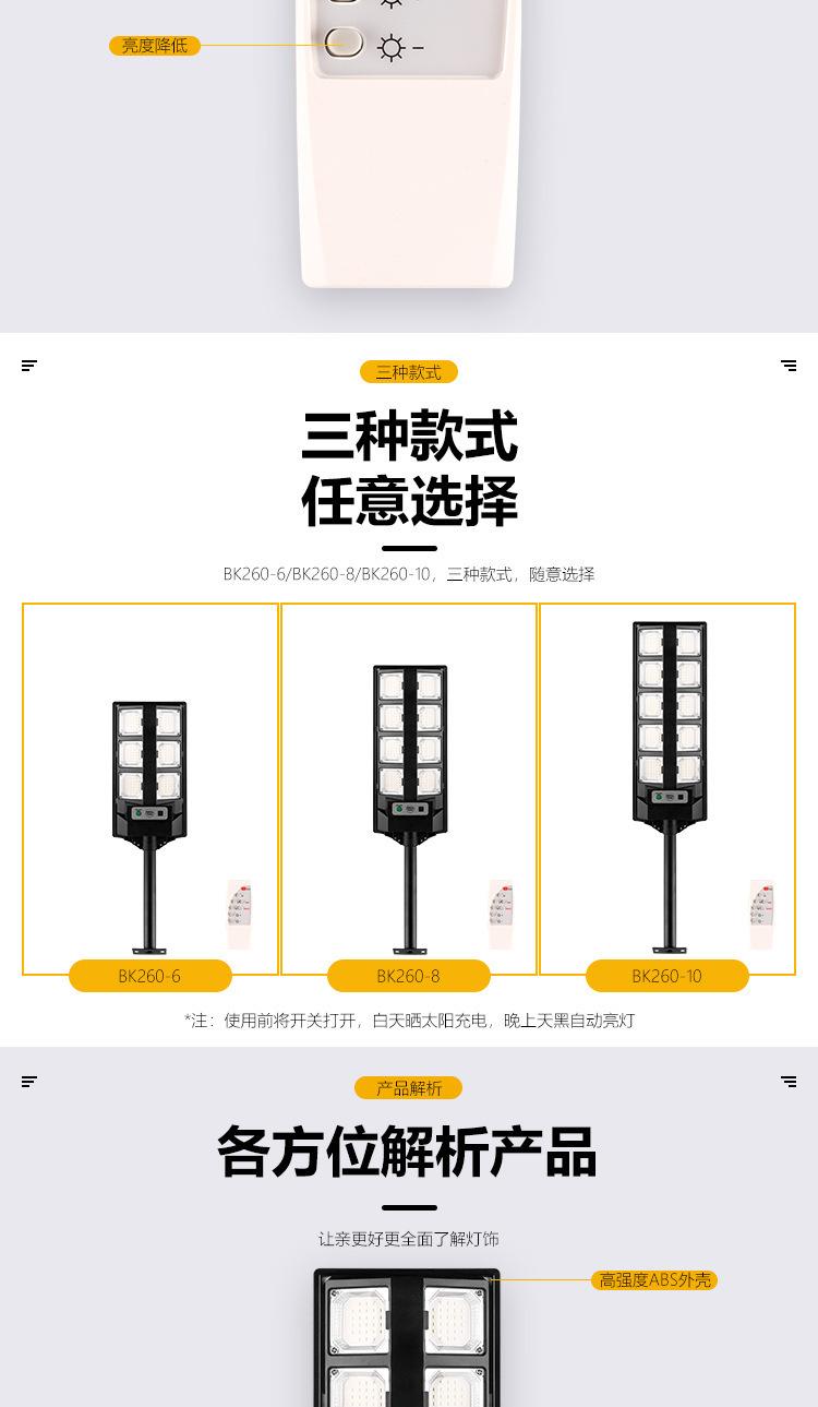 260-6 solar sensor street light, 260-8 solar sensor street light, 260-10 solar sensor street light