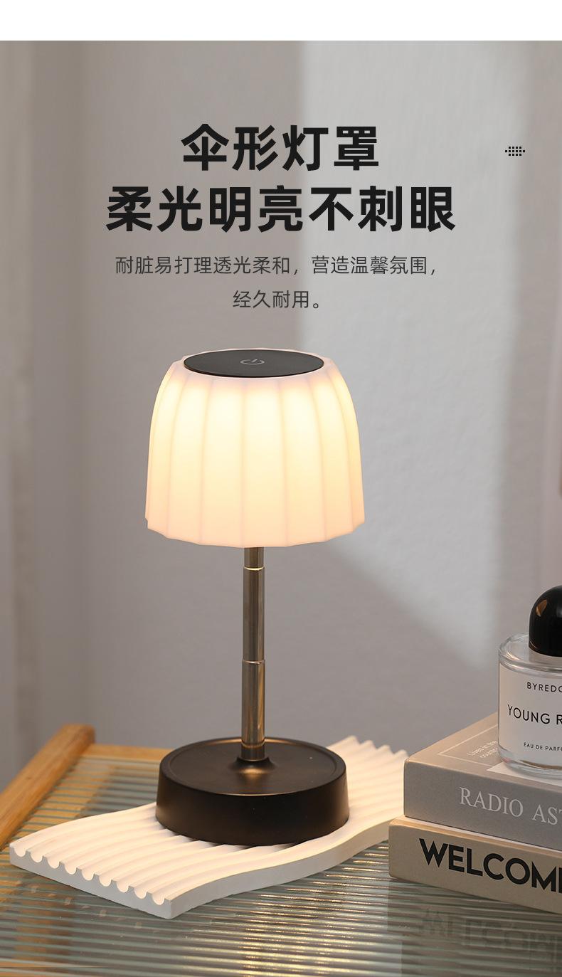 Luz Nocturna Recargable Retráctil de Noche Mesita de Noche Dormitorio Ambiente Lámpara de Mesa Linda Aprendizaje Gran Capacidad Duración de Batería Ultralarga Luz Nocturna