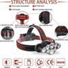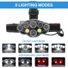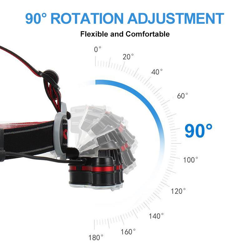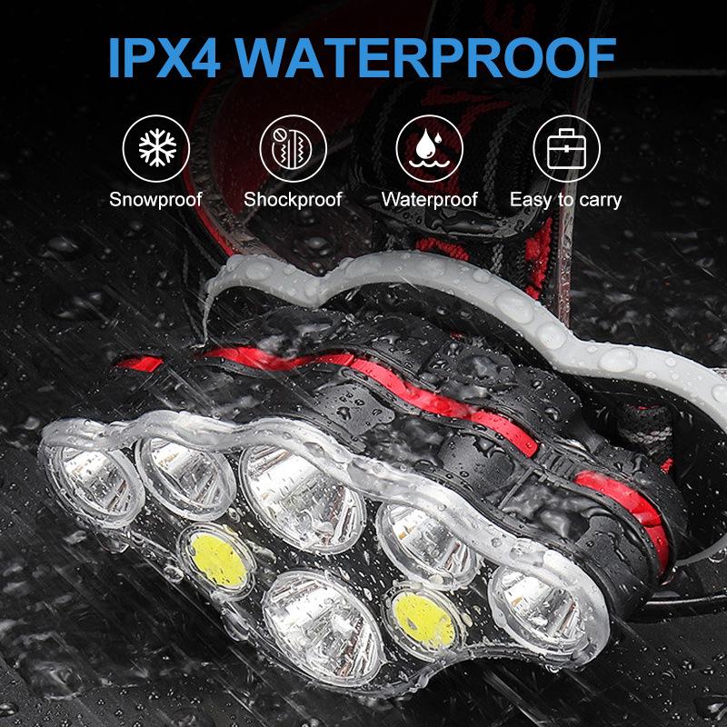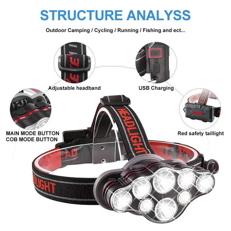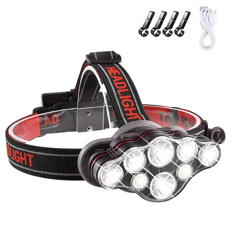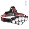 8LED headlamp black red with color box (including USB cable 2*18650 lithium battery)