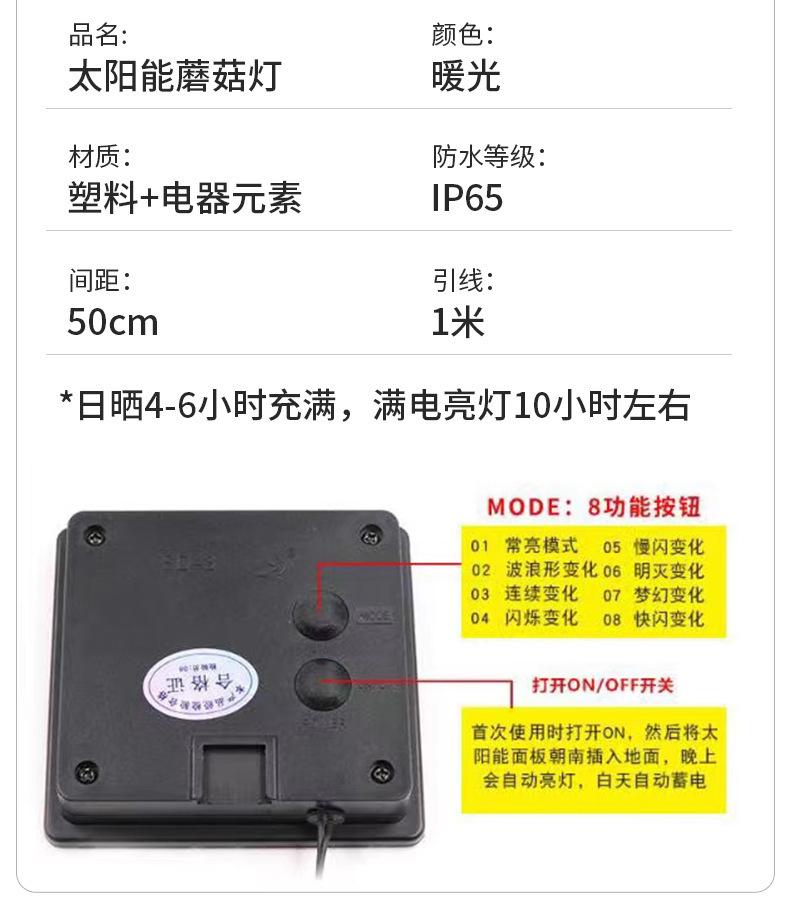 One-to-eight - Solar crack mushroom, One-drag-eight-solar-spot-mushroom, Single mushroom accessory - without lights