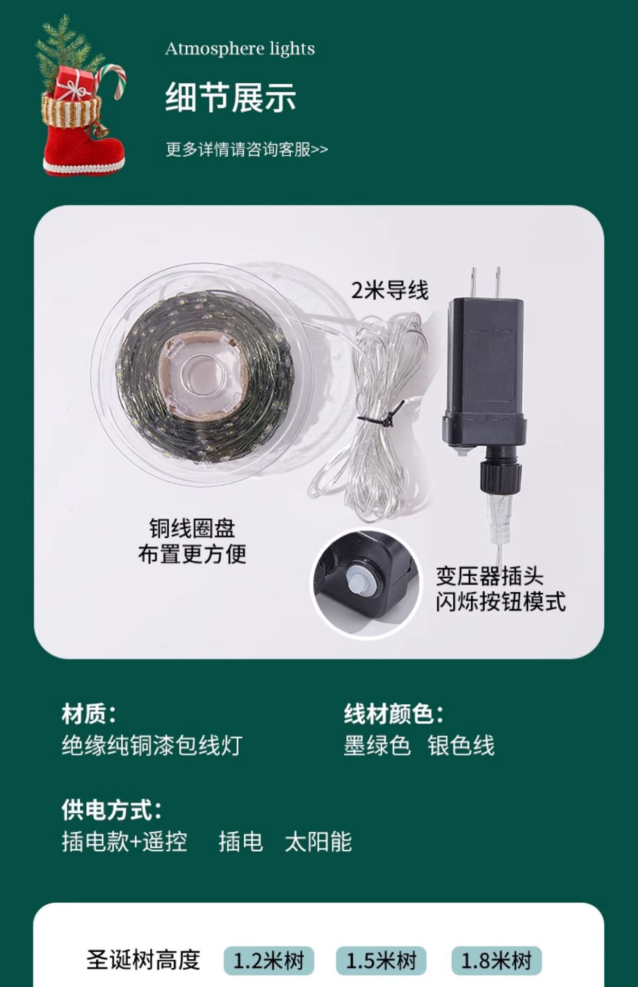 50 meters 500 lights [plug-in remote control] dark green wire warm color 《flashing+steady on》, 50 meters 500 l...
