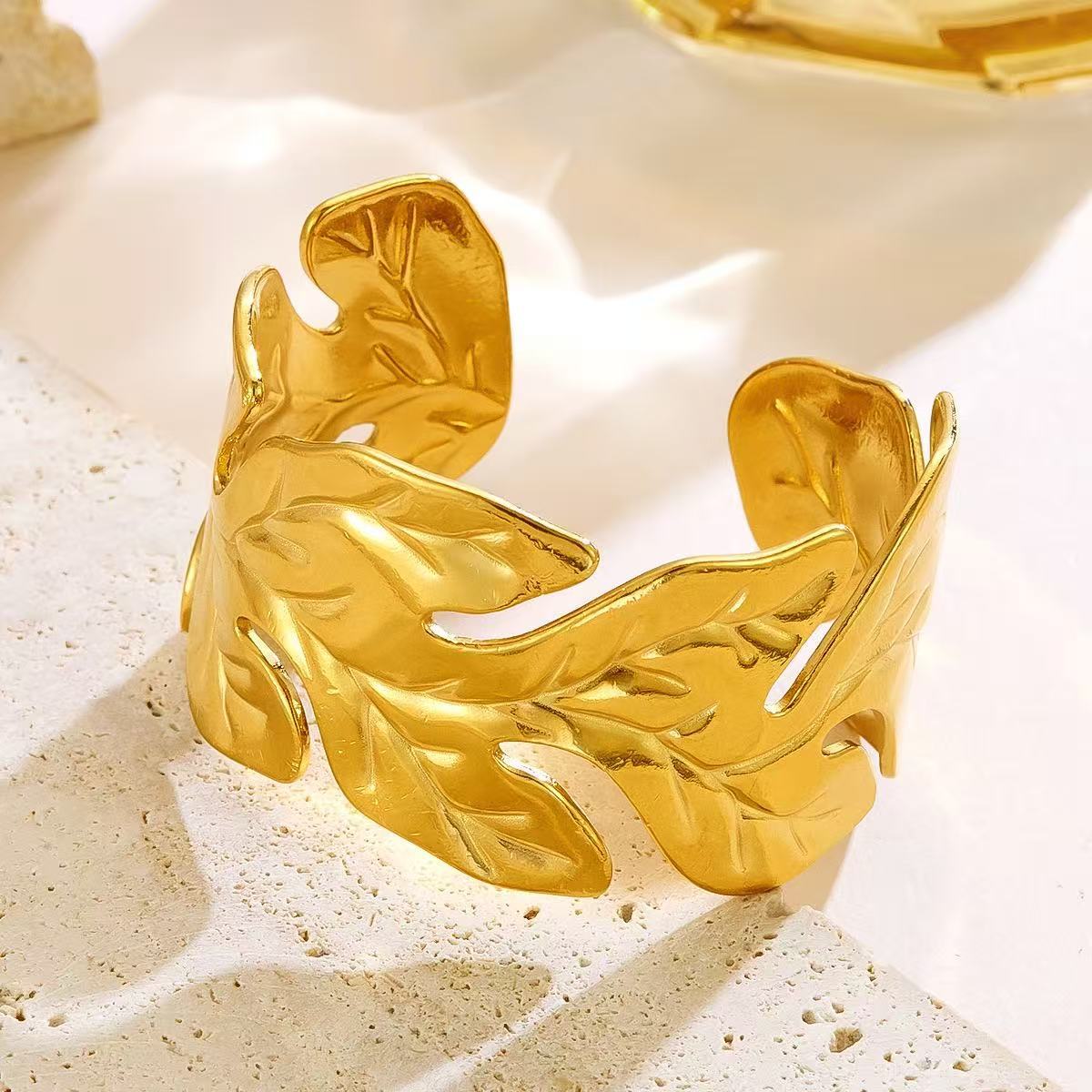 Diseño de nicho europeo y americano, súper personalidad de apertura amplia💫 Base de acero inoxidable chapada en oro real, forma de hoja realista, retro y de alta gama🍃 Adecuado para varios atuendos, ilumina fácilmente el look general, estilo caliente transfronterizo pre-pedido, úsalo y conviértete instantáneamente en un ICONO de la moda✨
