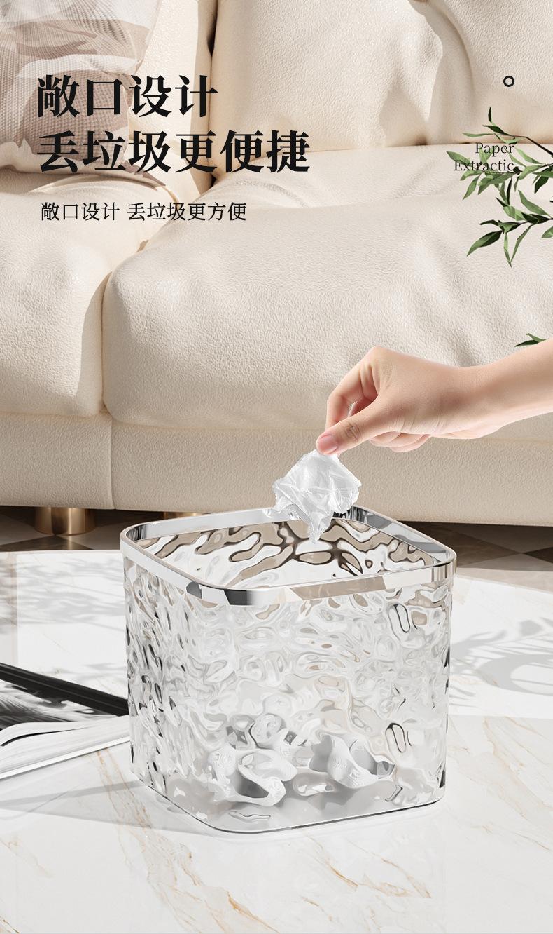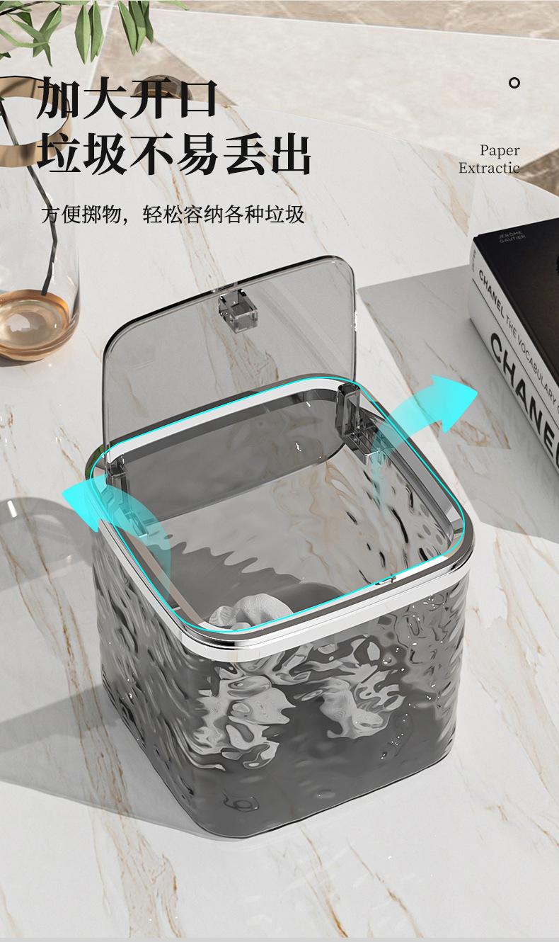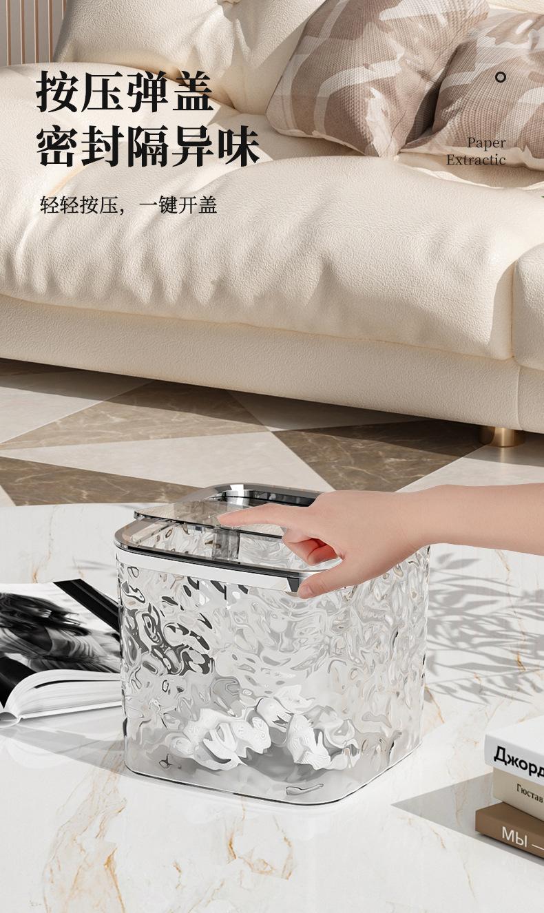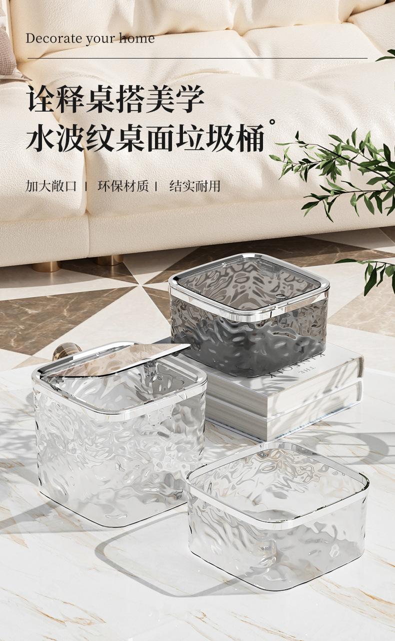 Mini Bote de Basura de Escritorio Tipo Push Pop-Up Cubo Sanitario Patrón Glaciar Cáscara de Semilla de Melón Pelado Basura Coche Bote de Basura