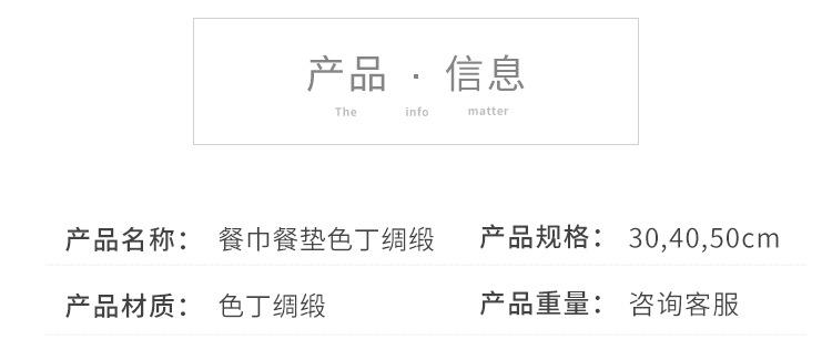 Servilleta de Tela para Restaurante de Hotel de Alta Gama Cuadrada de Alta Densidad Sobrehilado Tela de Satén Satén Poliéster Paño Segmentado Mantel Individual de Tela