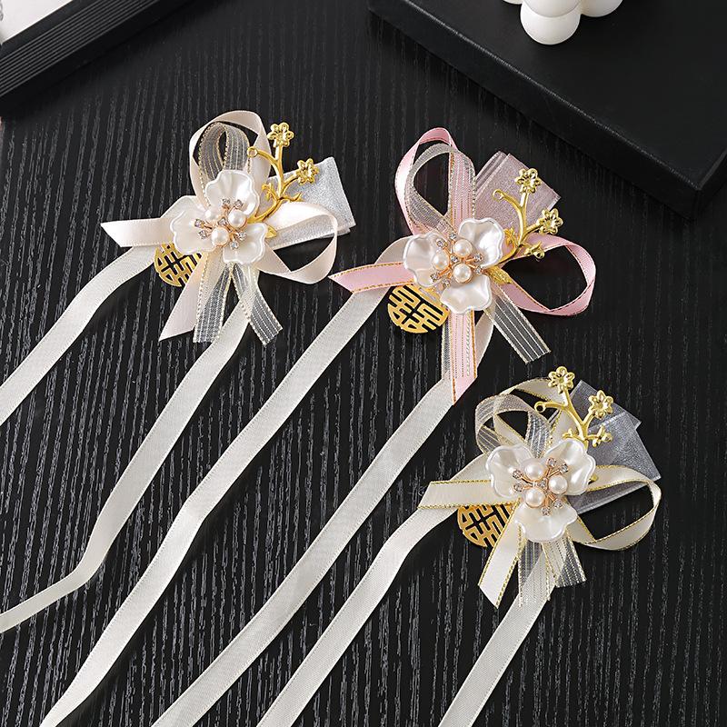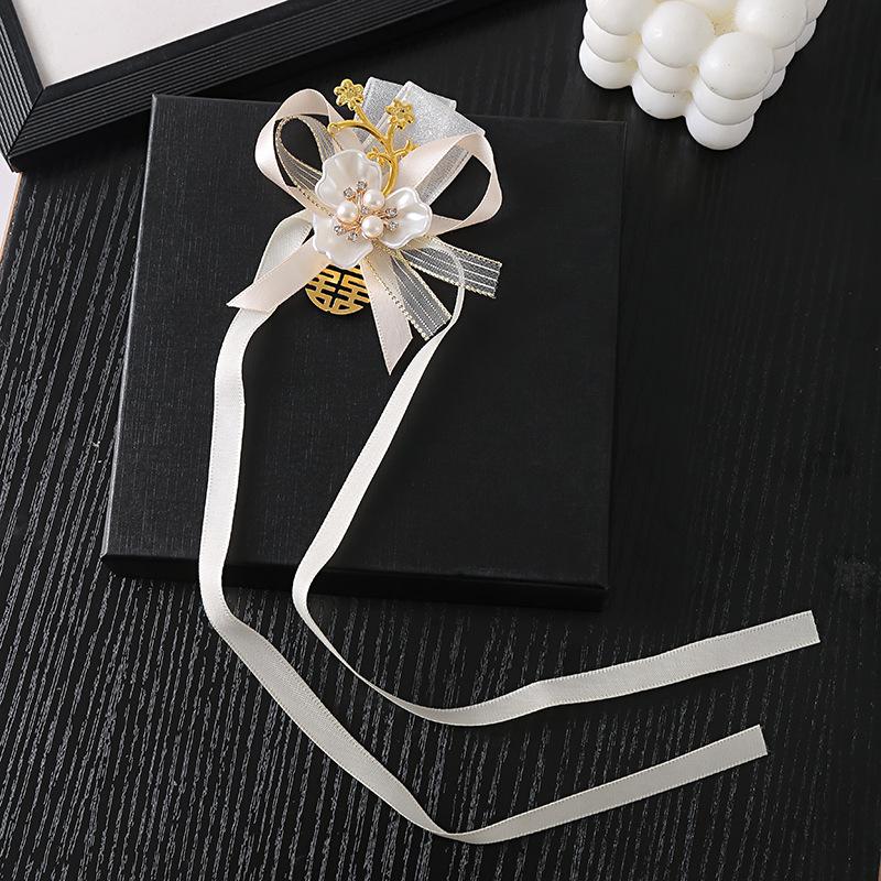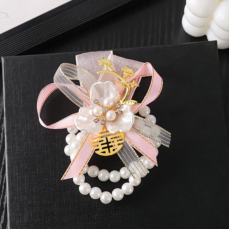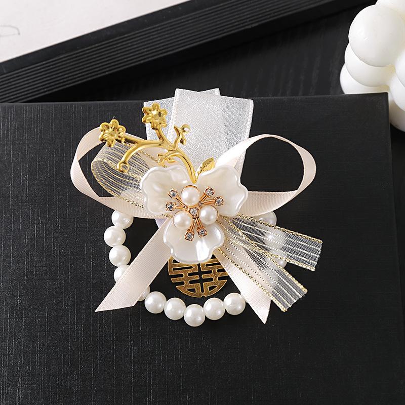 Corsage para Dama de Honor Hermandad de la Novia Flor de Mano Estilo Mori Fresco Boda Coreana Matrimonio Actuación Pulsera de Perlas Flor