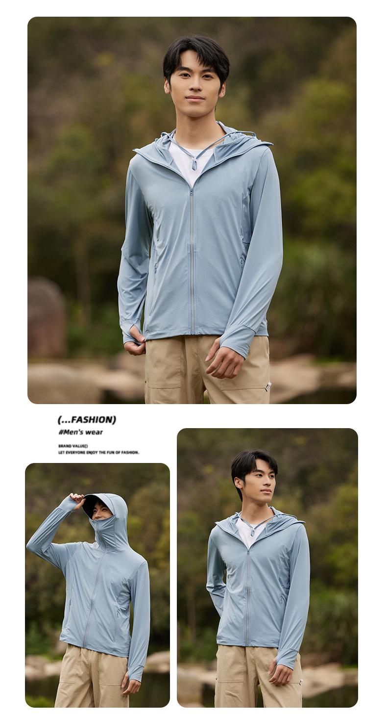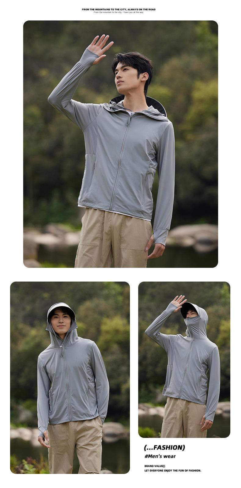 Ropa de Protección Solar de Verano para Exterior para Mujer Seda de Hielo Frío Helado upf50+ Chaqueta Cortavientos con Capucha Ropa de Protección Solar Anti-Ultravioleta para Hombre