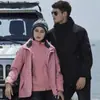 Chaqueta de montañismo para exteriores tres en uno cortavientos e impermeable para parejas, con forro polar y engrosada, conjunto de dos piezas desmontable