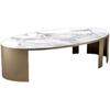 Mesa de Centro Ovalada Italiana de Lujo Ligero Moderna Simple Hotel Oficina de Ventas Sala de Estar Sala Modelo Acero Inoxidable Mármol Mesa de Té